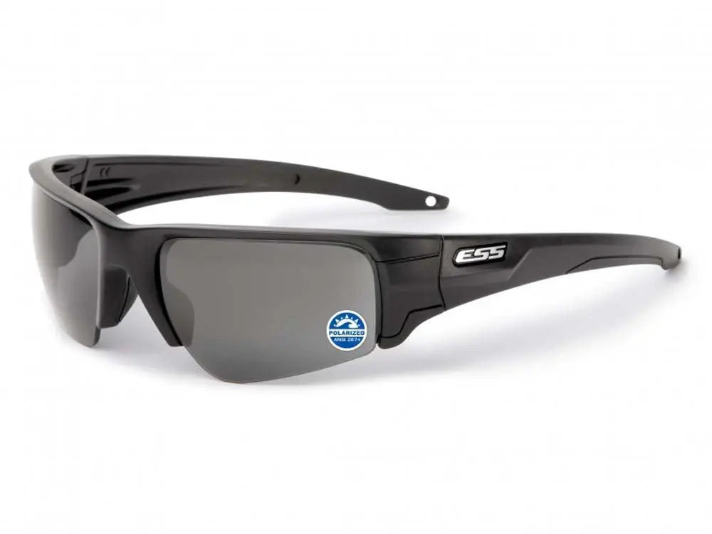 The ESS Crossbow Sunglasses are designed for elite tactical performance, combining advanced optics with rugged durability. Featuring a sleek black frame and silver ESS logo, these polarized mirrored gray lenses reduce glare while providing unmatched ballistic protection.