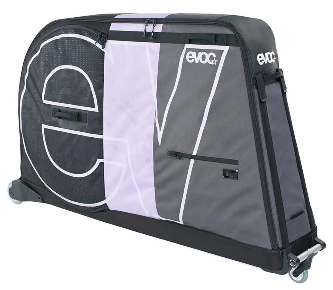 EVOC BIKE BAG PRO lightweight bike transport bag (incl. CLIP-ON WHEEL 2.0, DISC PROTECTION, FORK MOUNT stabilisation, BIKE STAND PRO, FRAME PAD, 305l, max. wheelbase 130 cm), Black | Description: The EVOC BIKE BAG PRO is a lightweight yet sturdy bike travel bag and is suitable for transporting many bikes. It offers enough storage space for cross country, all mountain, enduro, freeride, downhill, road, gravel, triathlon bikes and bikes for up to 29. The extra-wide chassis and numerous grip options make it ideal for transporting in the car, on plane journeys or on the train. The bag includes the practical BIKE STAND PRO and a protective FRAME PAD. If necessary, the wheels can be exchanged at any time. Particularly noteworthy is the extra-wide chassis, the clip-on wheels and handle options of the bag, which make it the perfect bike bag. In addition, the wheels can be stowed separately and protected by DISC PROTECTION. | Features: - separate compartment for the wheels - DISC PROTECTION - reinforced fork holder - exchangeable CLIP ON WHEELS - BIKE STAND PRO - FRAME PAD | Details: - Outer dimensions: 147 x 85 x 37 cm - Inner dimensions: 136 x 80 x 27 cm - Foldable: 147 x 25 x 37 cm - Volume: 305 l - Weight: 9600 g (total) - Max. wheelbase: 130 cm - Colour: Black | Material: - P 600D | Manufacturer: We still test all our products ourselves and work every day to make them just that little bit better. Our DNA is in every product and with everything we make we try to convey our passion for sport and travel. EVOC products are therefore always a little bit more than just pieces of equipment. EVOC stands for evolution and the concept for high-quality, sporty backpacks, bags and luggage with a special focus on uncompromising protection of people and material. Protect the things you love! Or shorter: EVOC - PROTECTIVE SPORTS PACKS