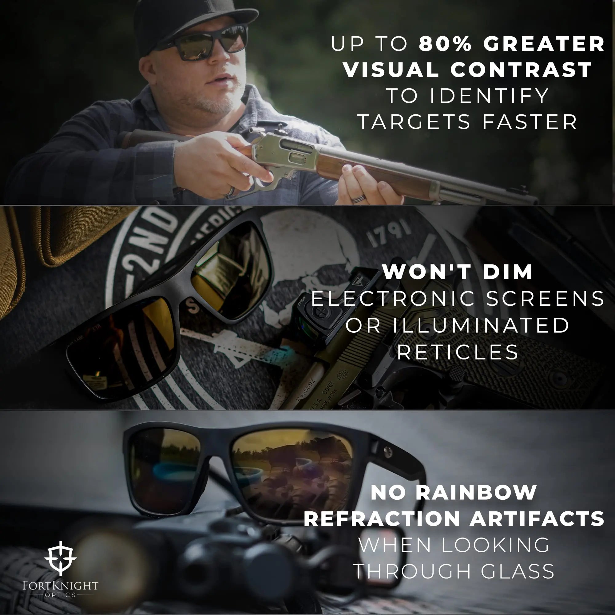 - PROFESSIONAL SHOOTING EYEWEAR - Clarity to make every round count. These FortKnight shooting safety glasses are designed for the indoor / outdoor shooting and hunting community. Perfect for everyone from hunters, shotgunners, to long-range rifle shooters