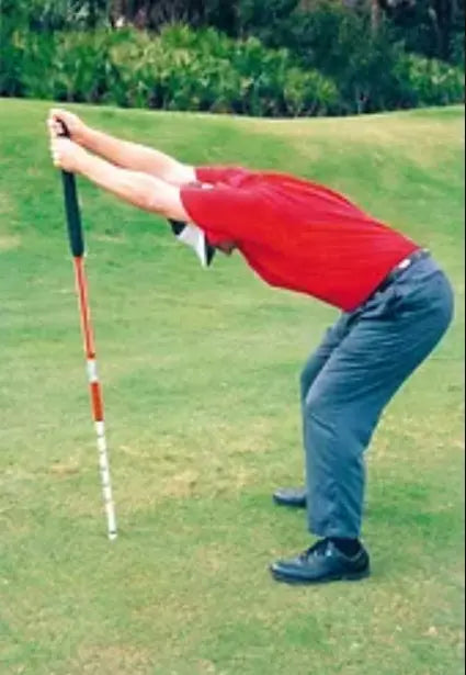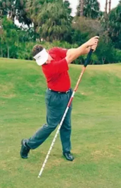 If a golfer does not have the proper flexibility to complete the turn, they will often finish the swing with a bad sway to the right, a serious bend of the left arm, or by picking up their head.