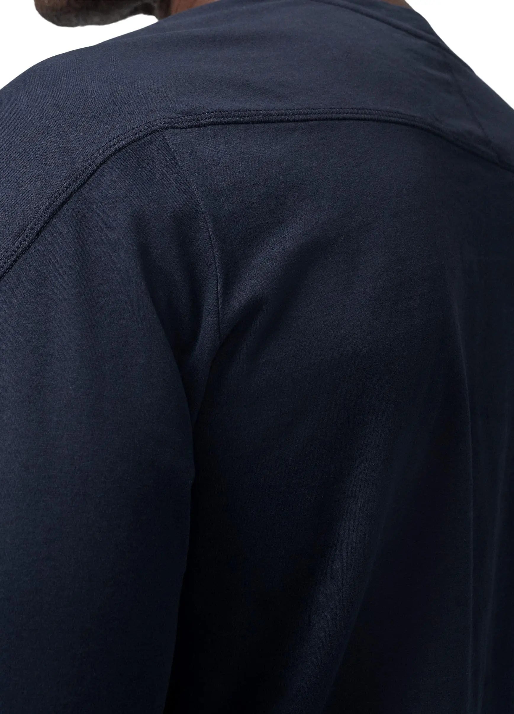 The classic long sleeve tee is elevated with a wrap around back seam detail and premium cotton jersey fabric.