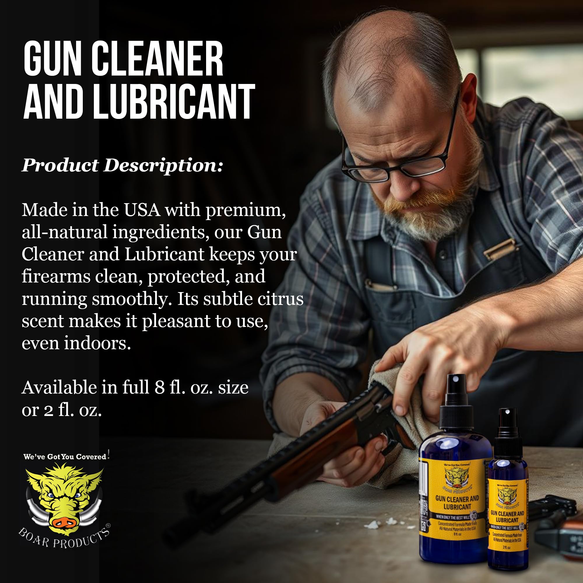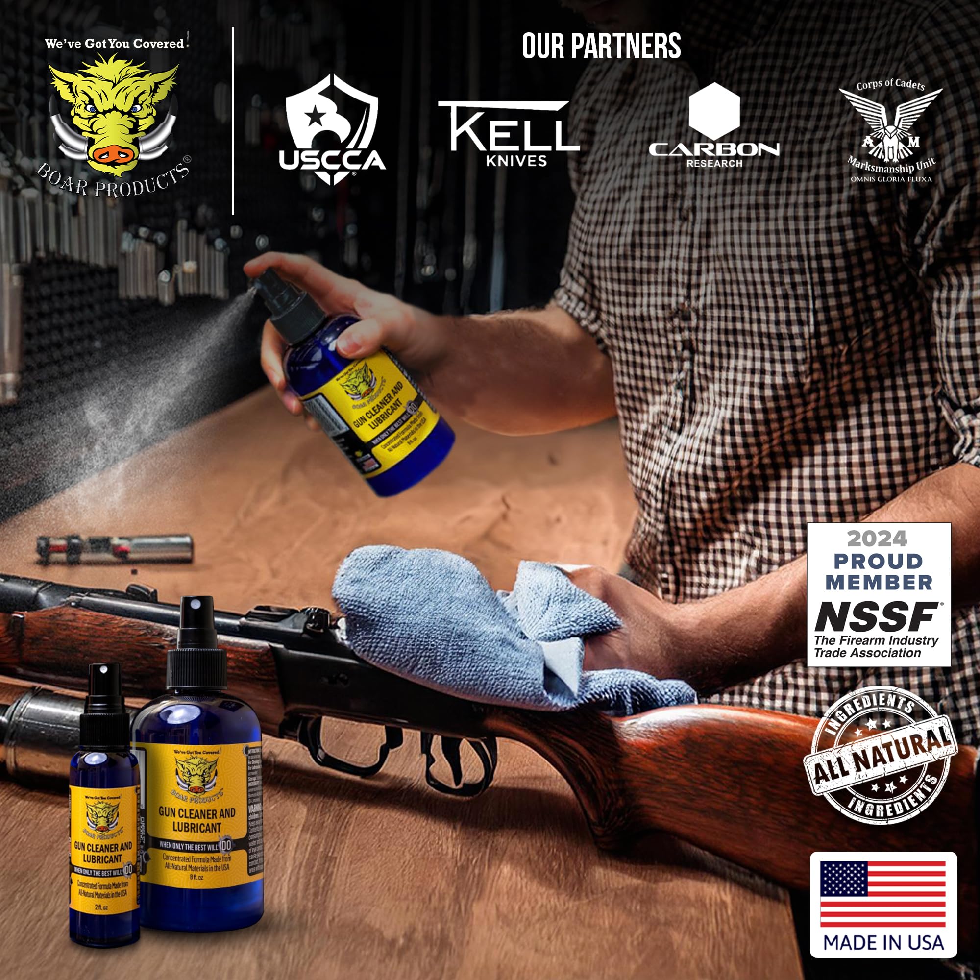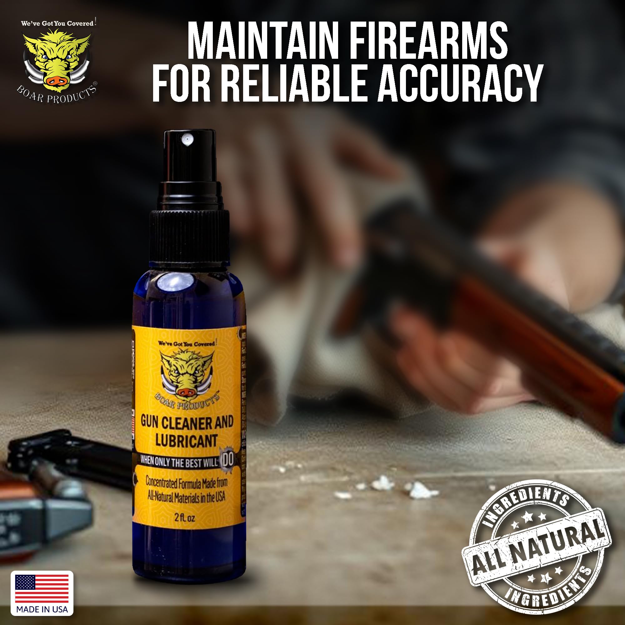 - Unmatched Versatility: Better than gun oil wipes or a gun cleaning solvent and oil, Boar Products CLP spray gun cleaner, in a tightly sealed gun oil bottle, excels with all firearms providing comprehensive care and reliable performance inside your gun oil and cleaning kit