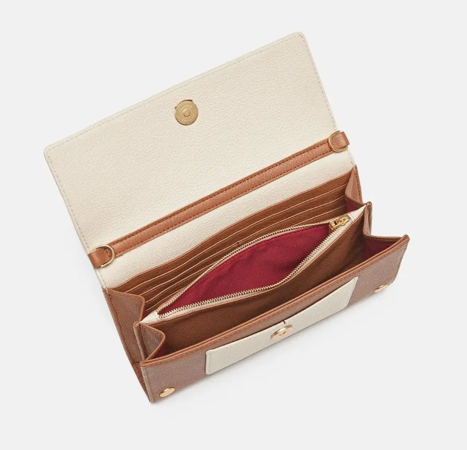 A new addition to our selection of structured styles, AJ looks sleek as a special event clutch or crossbody wallet, designed with a removable strap and organization in mind. Inspired by our favorite cafe in Los Angeles, cafe au lait brings the French indulgence of "coffee with milk" to life. Made with a color blocking treatment that features soft pebbled leathers and a hint of sheen, you'll be saying je t'aime to this combination of warm-leaning brown and neutral light beige hues.
