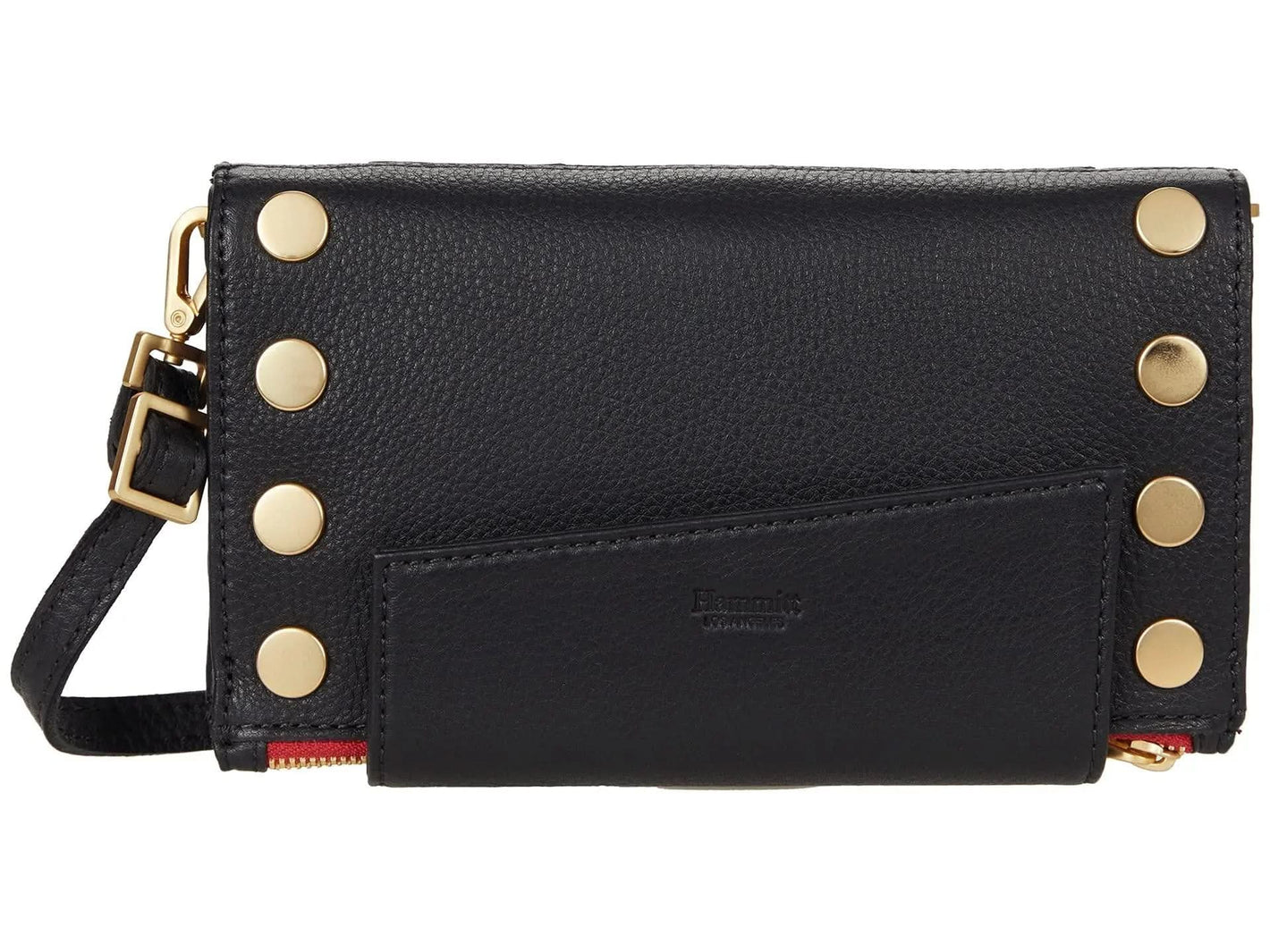 Hammitt Women's Levy Small Leather Purse With Strap Black/Brushed Gold With Red Zipper
