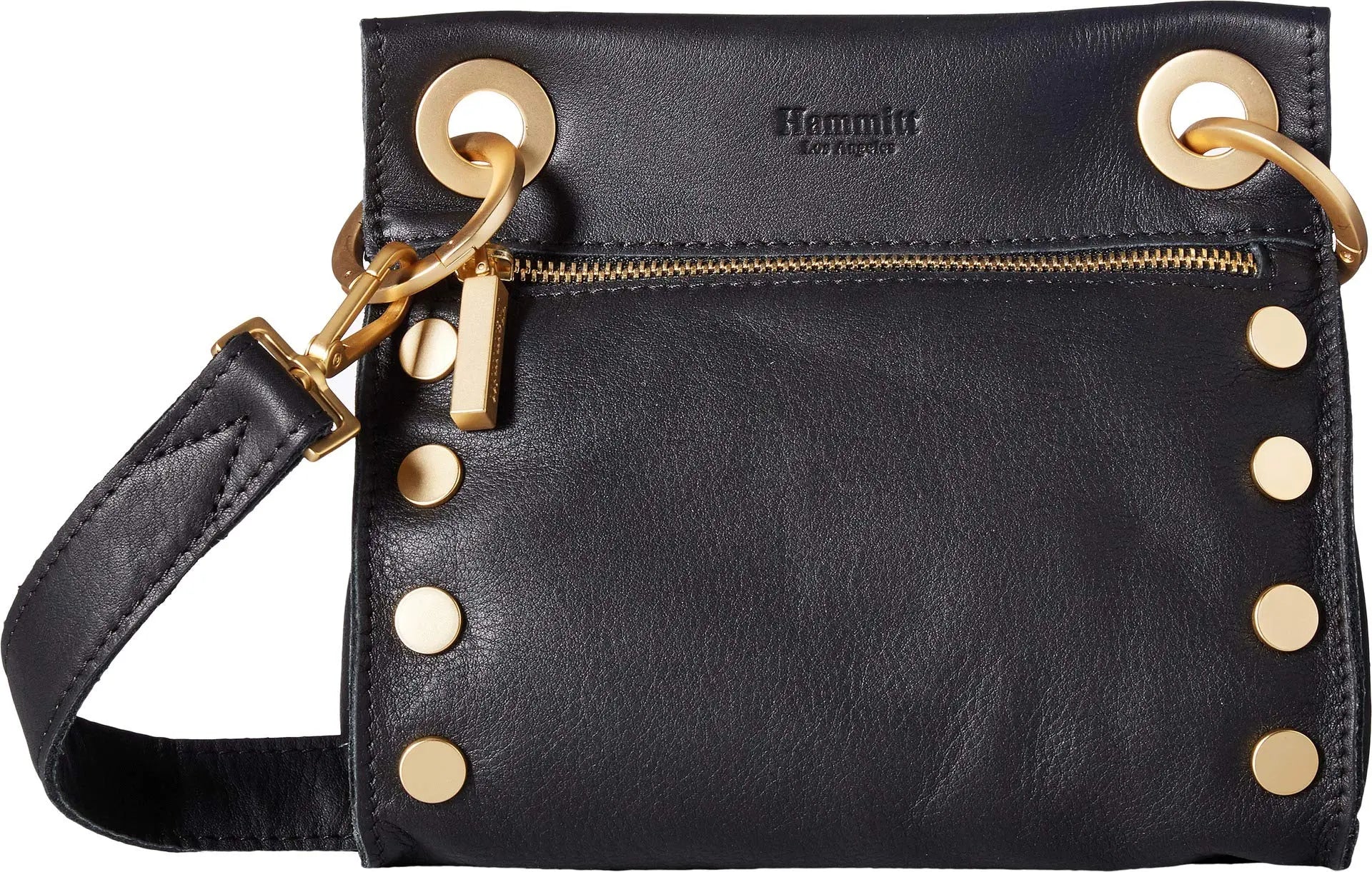 Transform your look from day to night with the Hammitt Tony Small crossbody bag! Made of leather. Zipper closure. Adjustable shoulder strap. Front zipper pocket. Back cell phone pocket. Signature stud hardware. Suede lining. Interior includes zipper pocket and slip pockets.