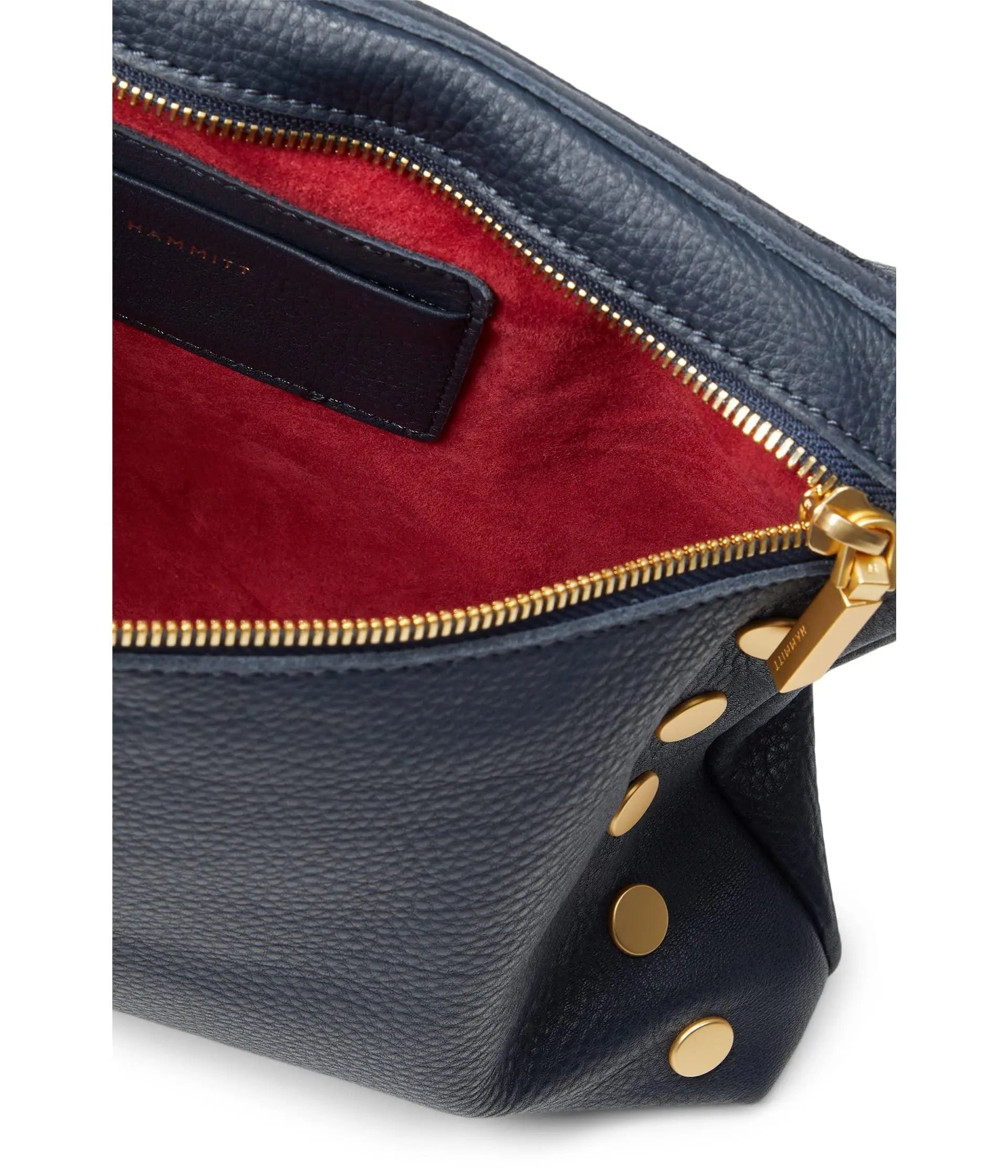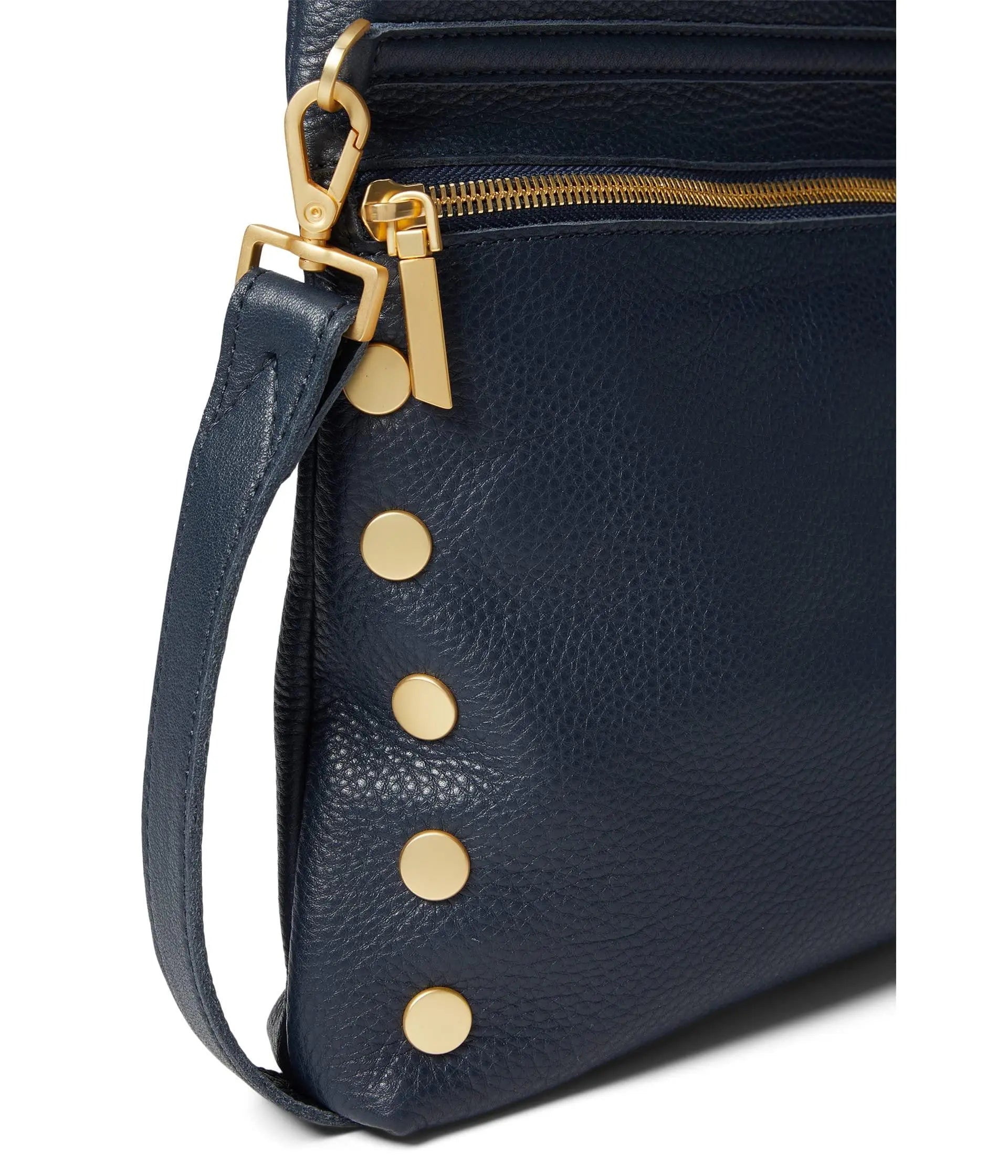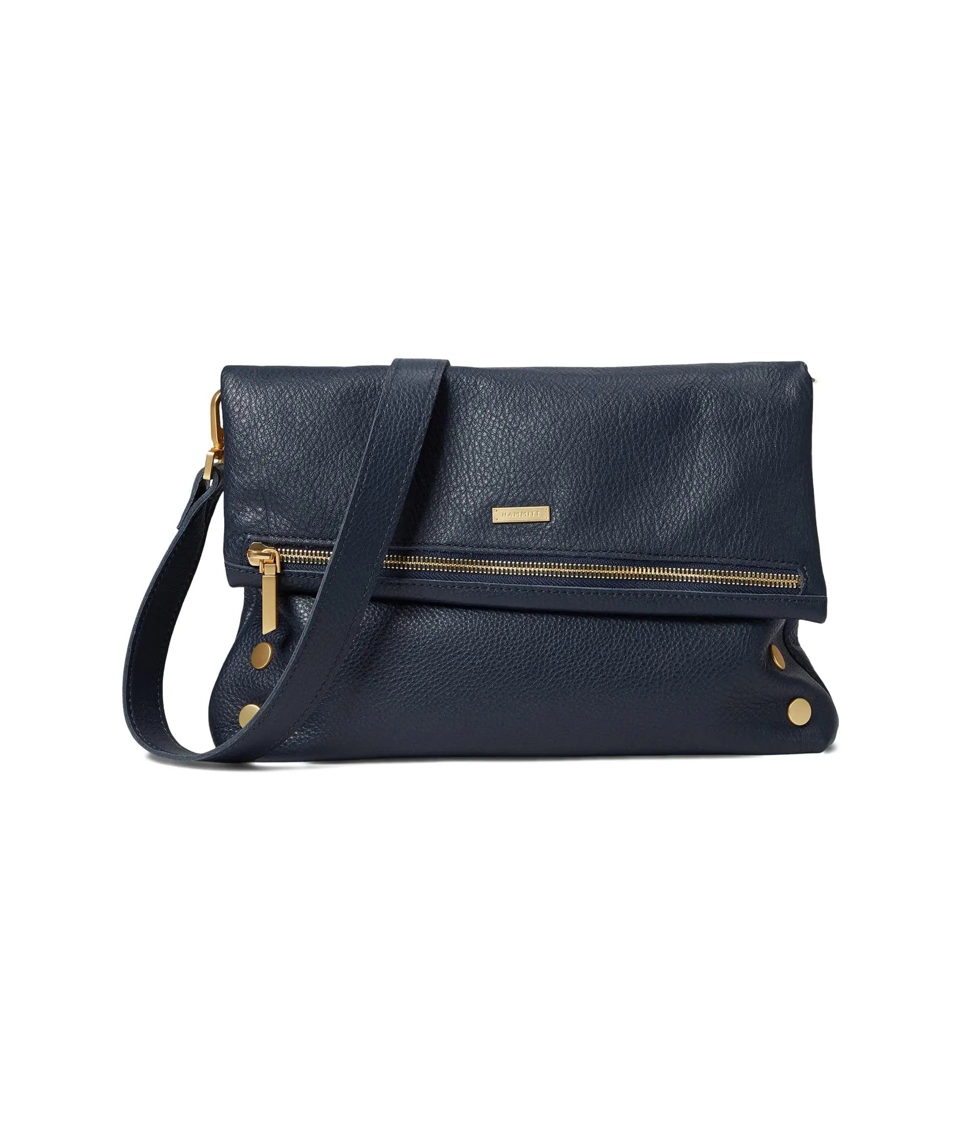 Hammitt Women's VIP Large Leather Purse With Strap Navy Tides/Brushed Gold With Zipper – Currently Out of Stock