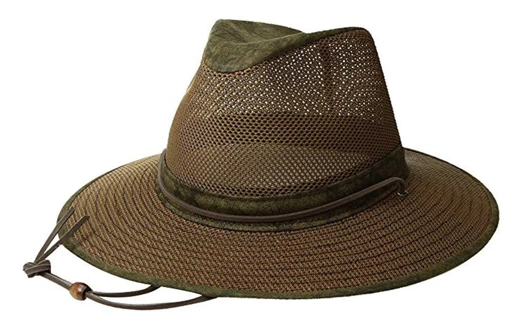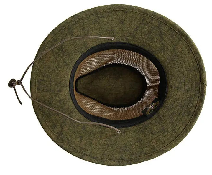 The hat is also crushable and packable and features 1- inch self-band that holds the hat together and makes traveling easy.