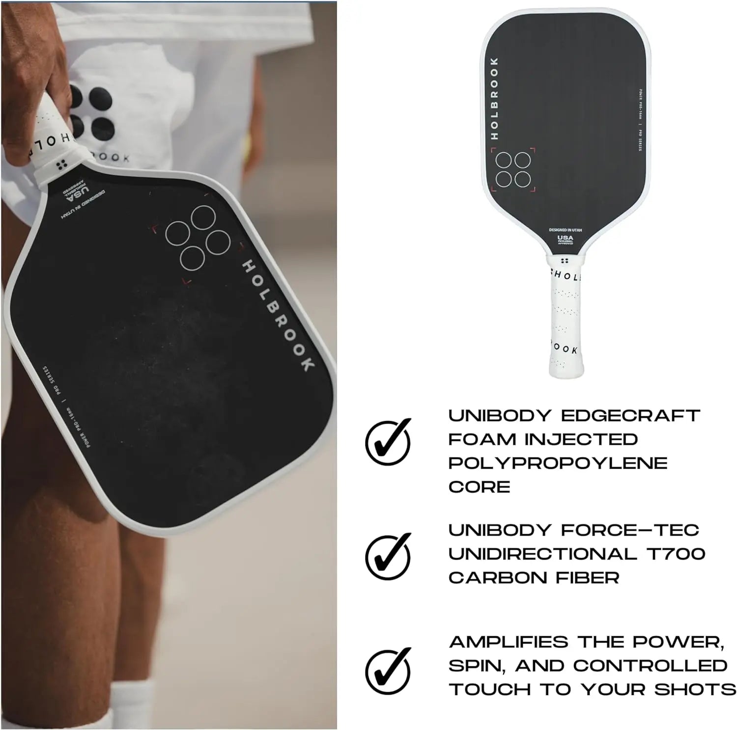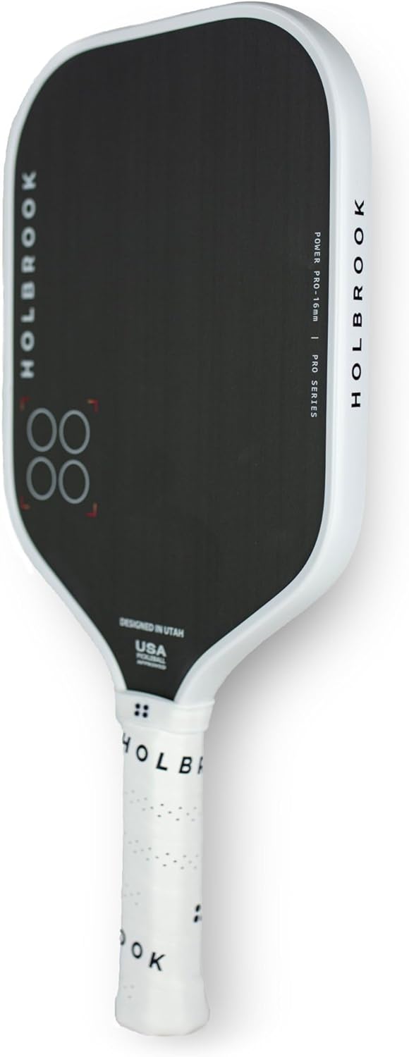 The Holbrook Power Pro paddle permits extreme power and spin while keeping a controlled touch. This paddle delivers enhanced performance for elite players. It's the lightest weight paddle giving players the most speed and power. This paddle exhibits a great amount of power, pop, strength, and durability, but provides more of a controlled feel and forgiving sweet spot due to its thickness.