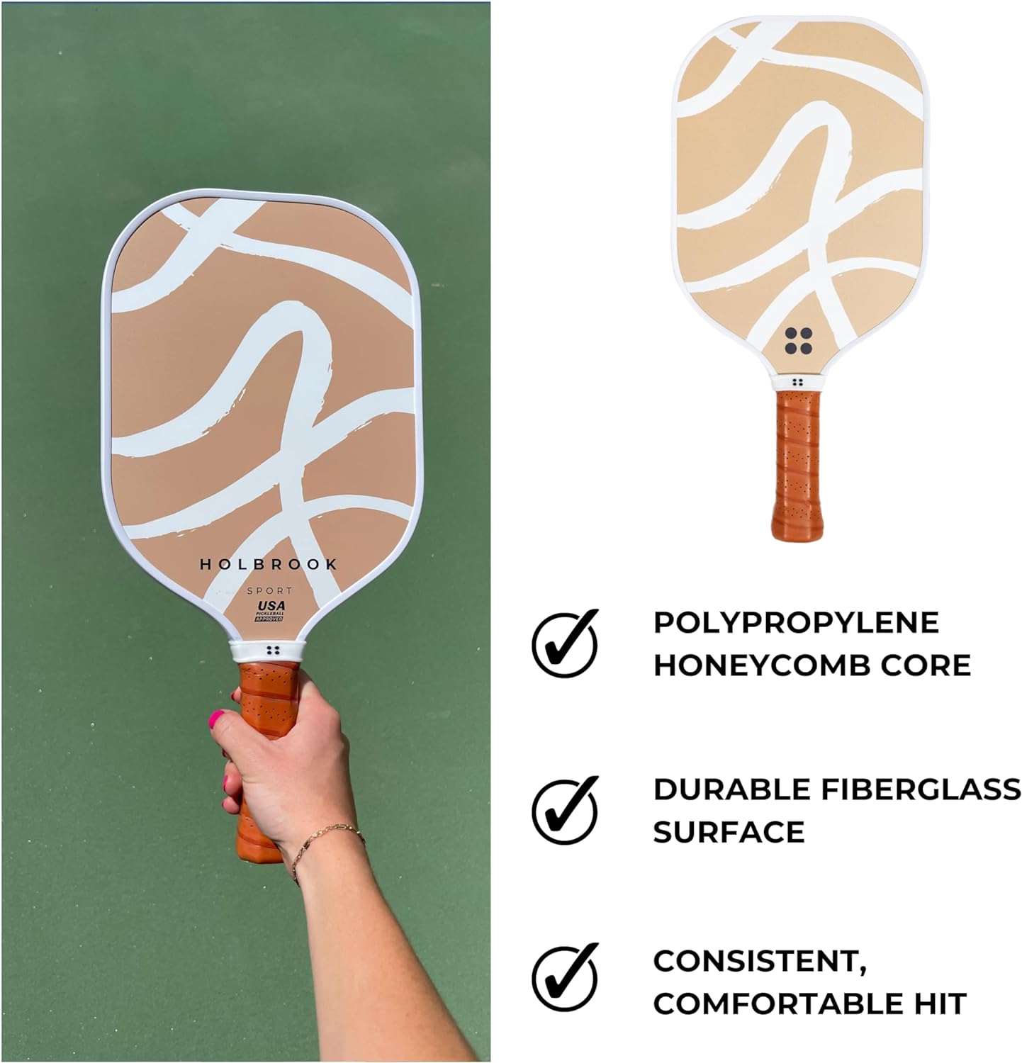 - The Holbrook Sport Series Paddles, feature a Polypropylene honeycomb core, elevates your pickleball game. This core technology provides an ideal blend of strength and responsiveness, ensuring precise and powerful shots. With a larger sweet spot, it's perfect for players of all levels, offering consistent performance and durability. The Sport Paddles have a Polypropylene honeycomb core is your ticket to pickleball excellence.