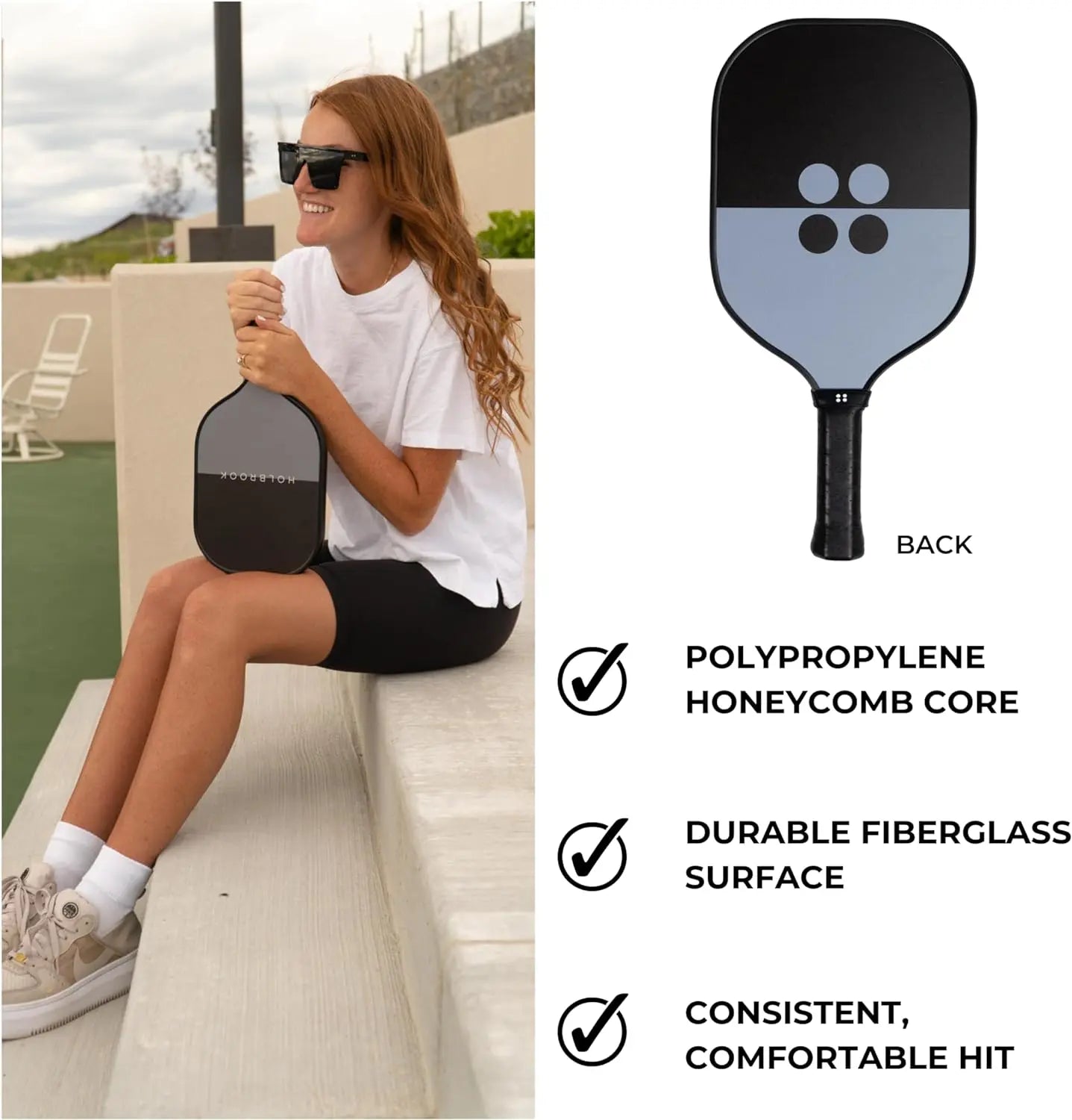 The Holbrook Pickleball Paddles are the ultimate fusion of power and control, making it the pinnacle of hybrid paddle technology. Part of Holbrook's esteemed Sport Series, this paddle provides a durable consistent pop with a large sweet spot.. It boasts a responsive Polypropylene Honeycomb core, ensuring dynamic play and precise control. The surface is a masterful blend of durable Fiberglass, offering versatility in every shot. Holbrook's Sport Series, these paddle's were designed to give you a consistent, comfortable hit. Built for beginner - intermediate players looking to grow their game. With dimensions measuring 15.75â in height and 7.8â in width, this paddle strikes the perfect balance between maneuverability and surface area. Weighing in at just 7.7 oz, it provides agility on the court, complemented by a comfortable 5-inch grip length for secure handling. The 14mm thickness adds to its overall performance.