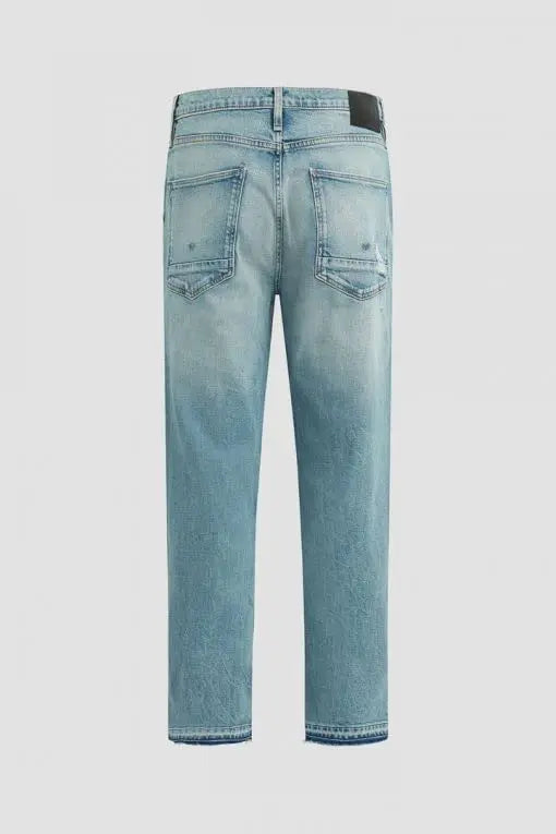 Features an undone hem and classic five-pocket details.