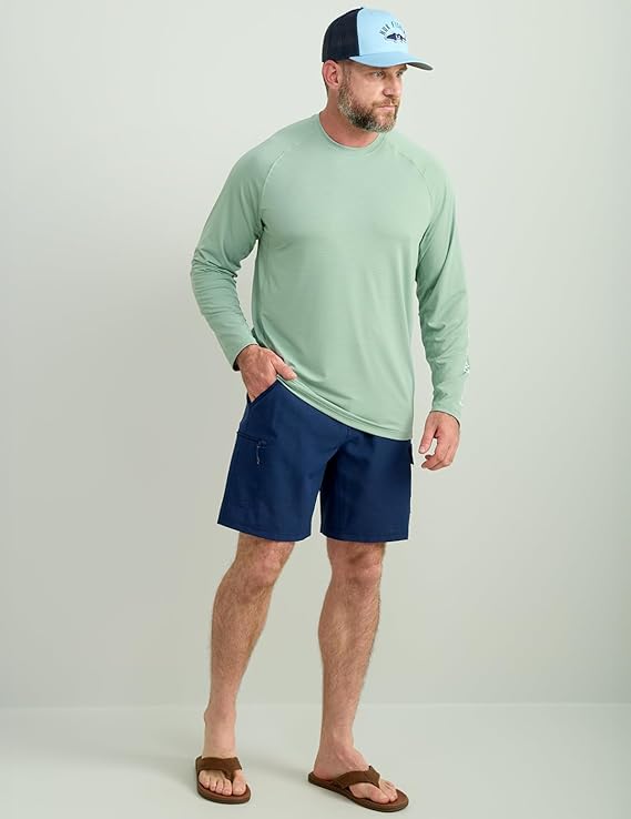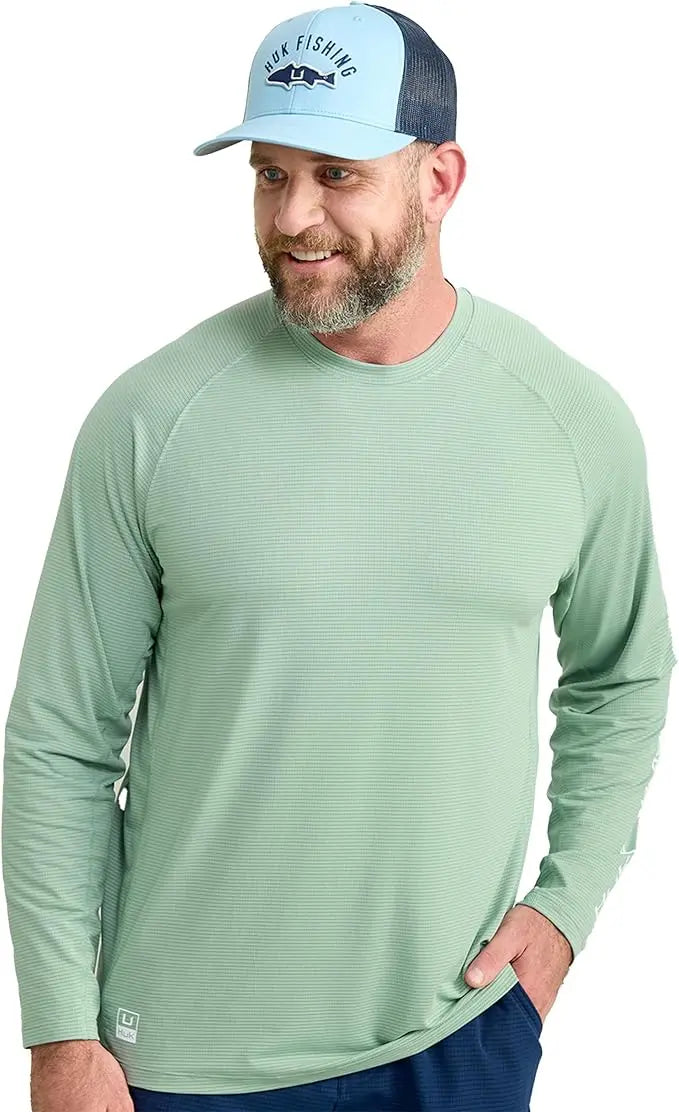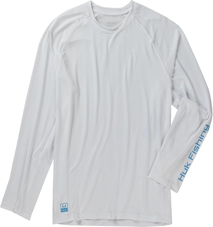 - HUK A1A CREW FISHING SHIRT: Designed with breathable mesh panels to enhance airflow and keep you cool during long fishing trips in hot weather
