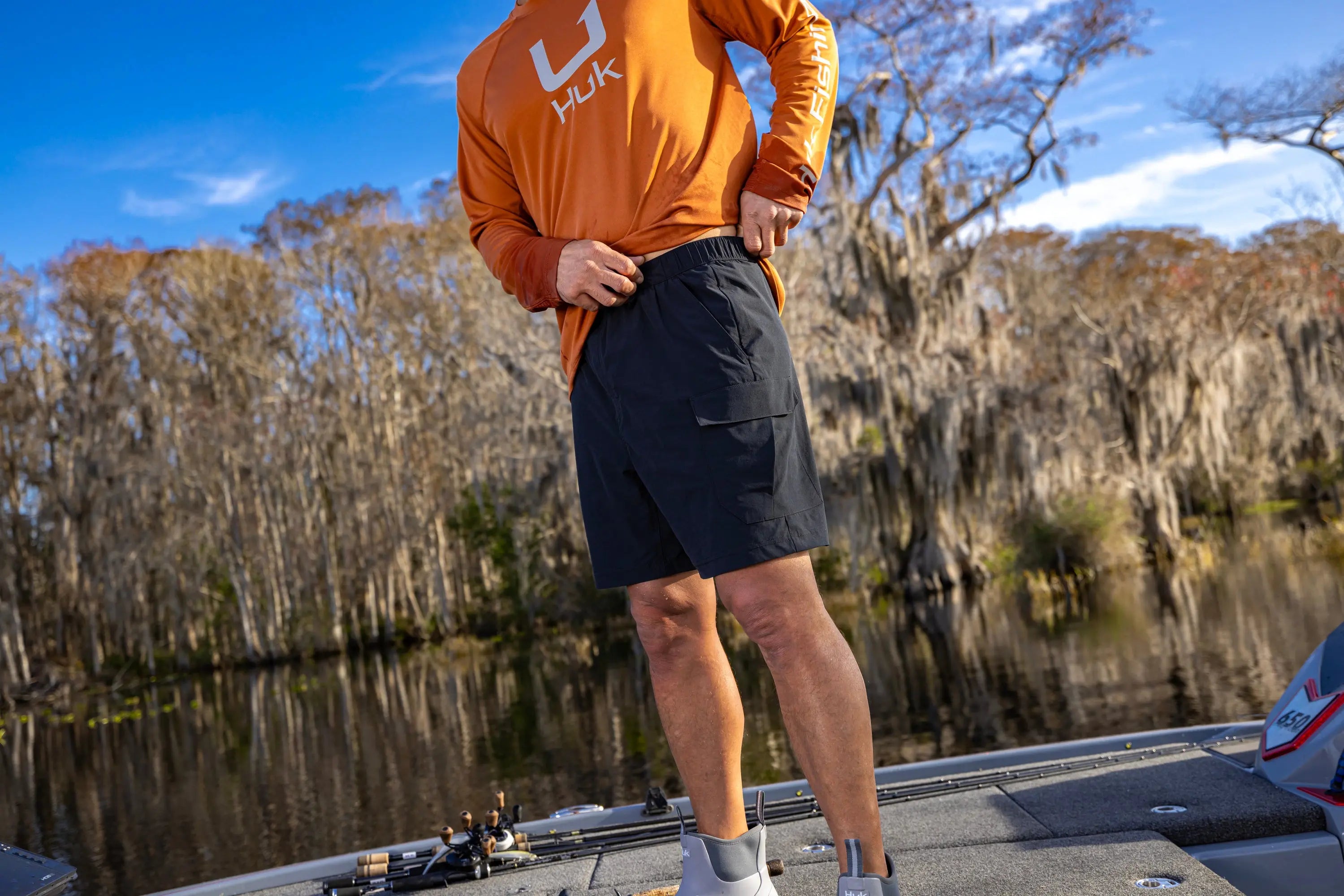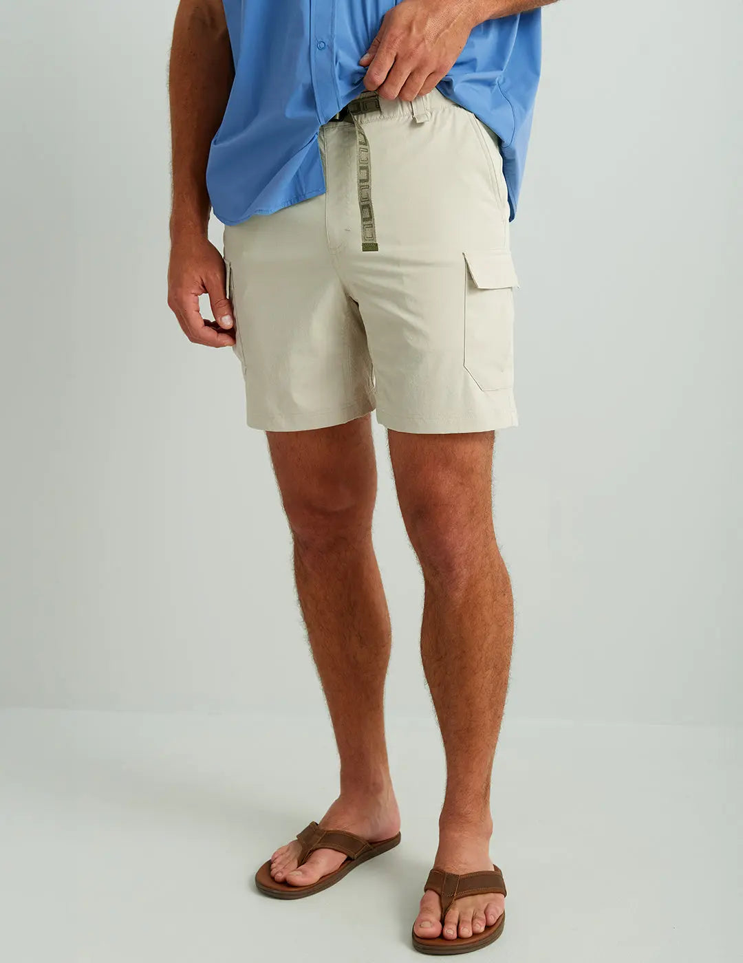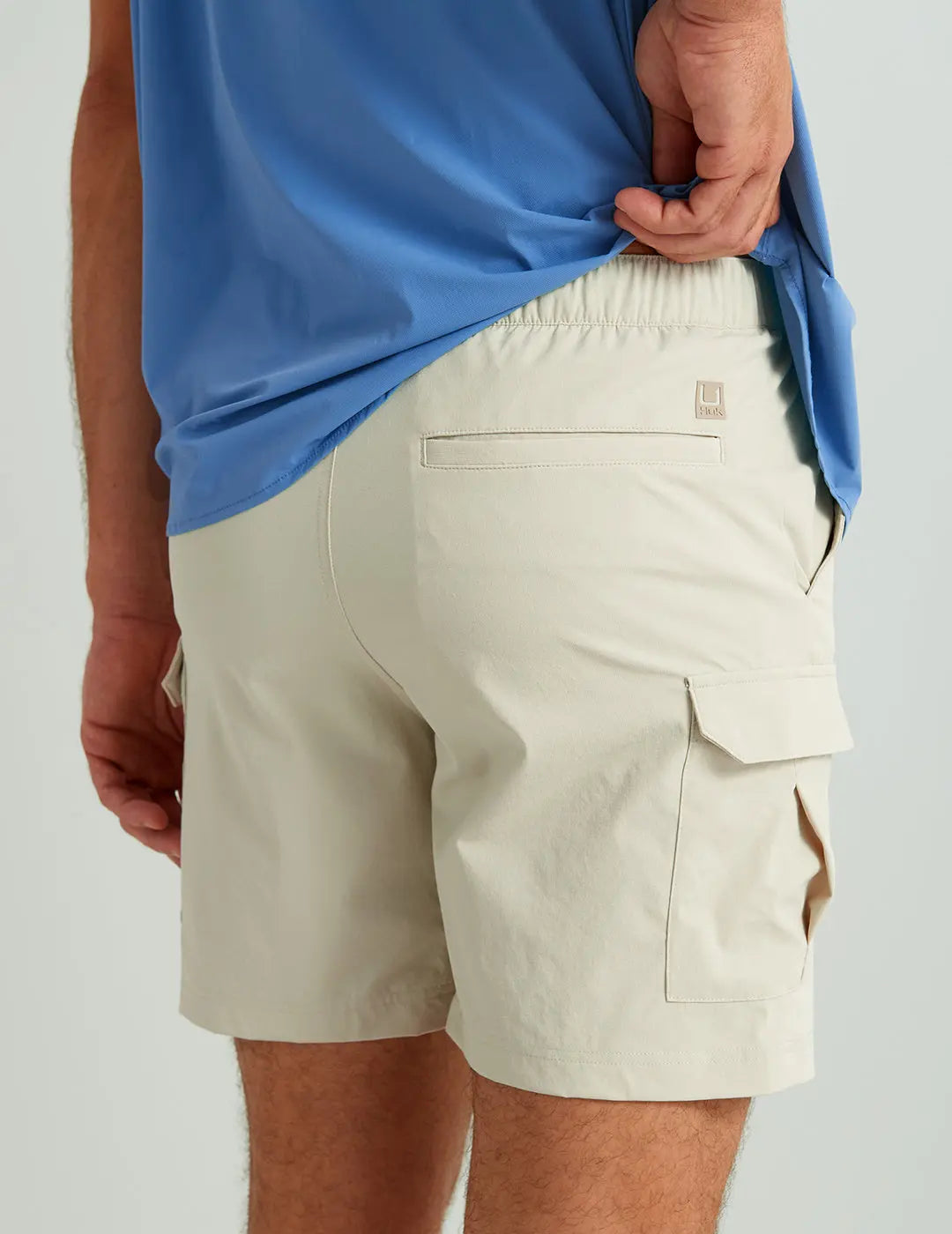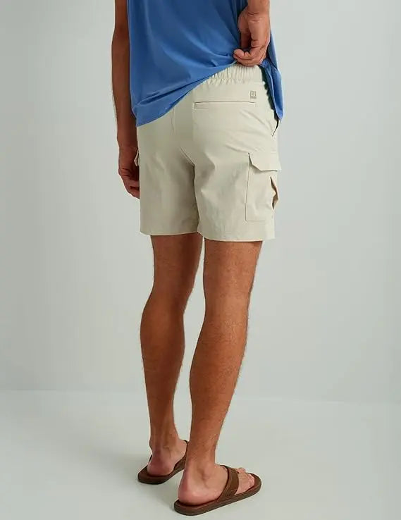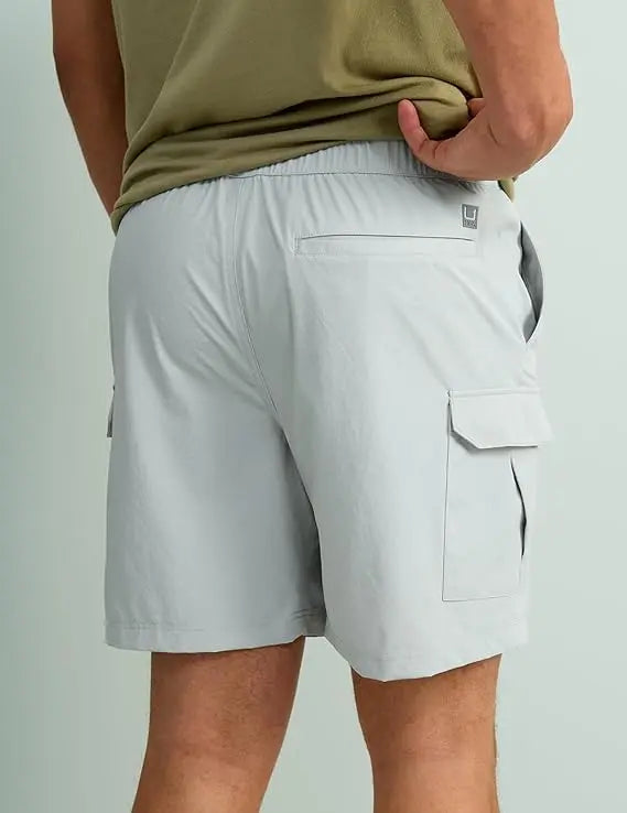 - CREEKBED 7" CARGO SHORT: Utility and performance-focused design for use both on and off the water. Fishing shorts feature velcro welt pocket, tension lock buckle closure, and side cargo pockets