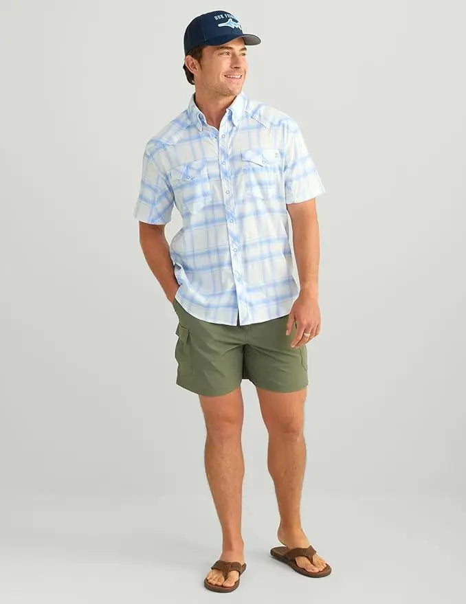 - HUK MENS DIAMONDBACK SHORT SLEEVE BUTTON DOWN SHIRT: Made from lightweight materials that promote airflow, keeping you cool and comfortable during warm days on the water