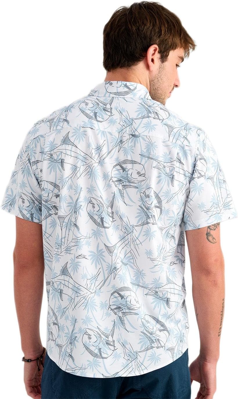 HUK Men's Kona Pattern Performance Short Sleeve Button Down Shirt