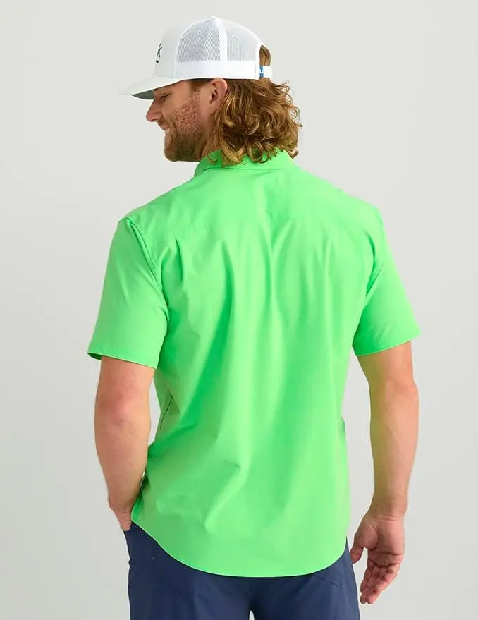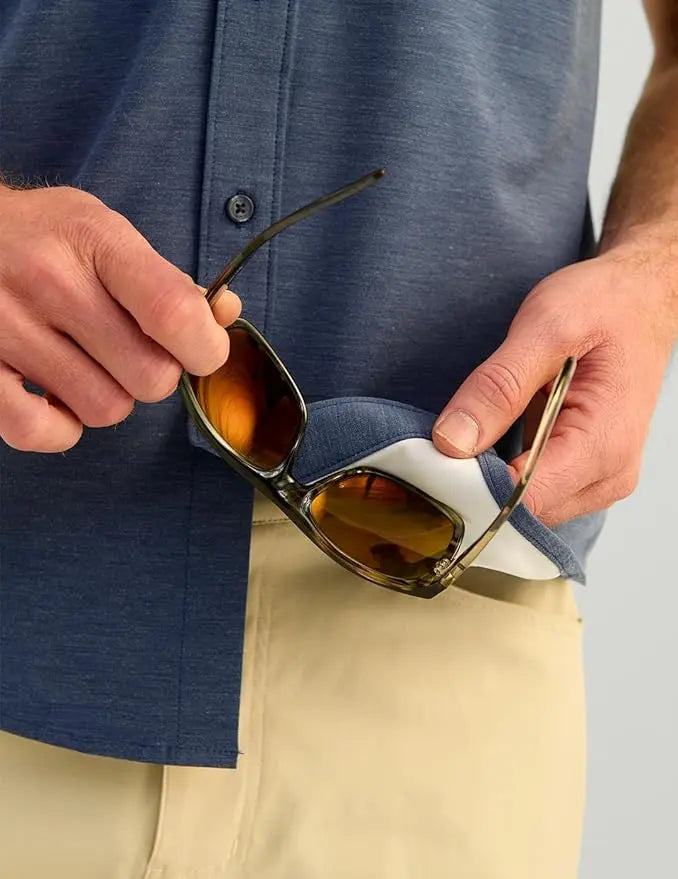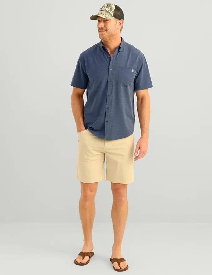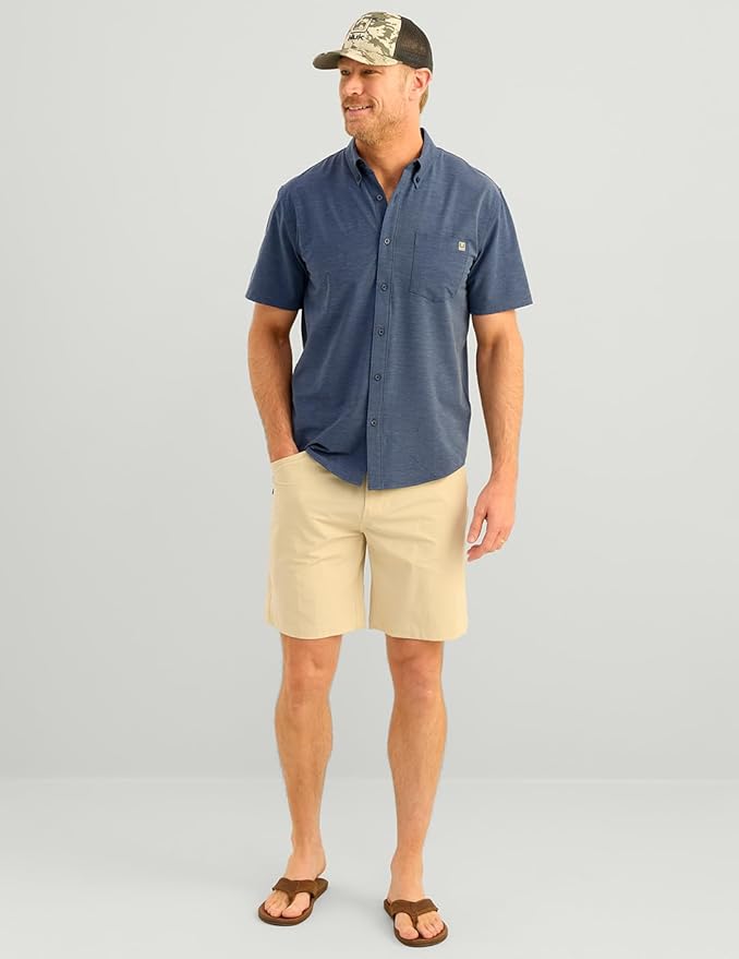 The Huk Kona Short Sleeve Shirt is a versatile button-down designed for day-long use. Crafted of lightweight, breathable, quick-drying fabric with two-way stretch and a built-in microfiber sunglasses wipe, the Kona is optimized for comfort and convenience both on and off the water. Its design enables easy transition from boat to bar for an enjoyable day in the sun.