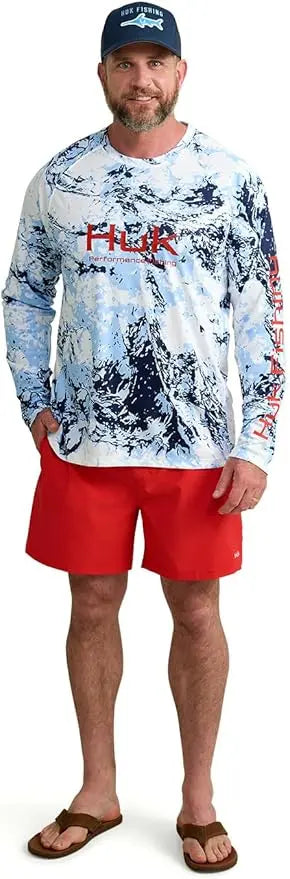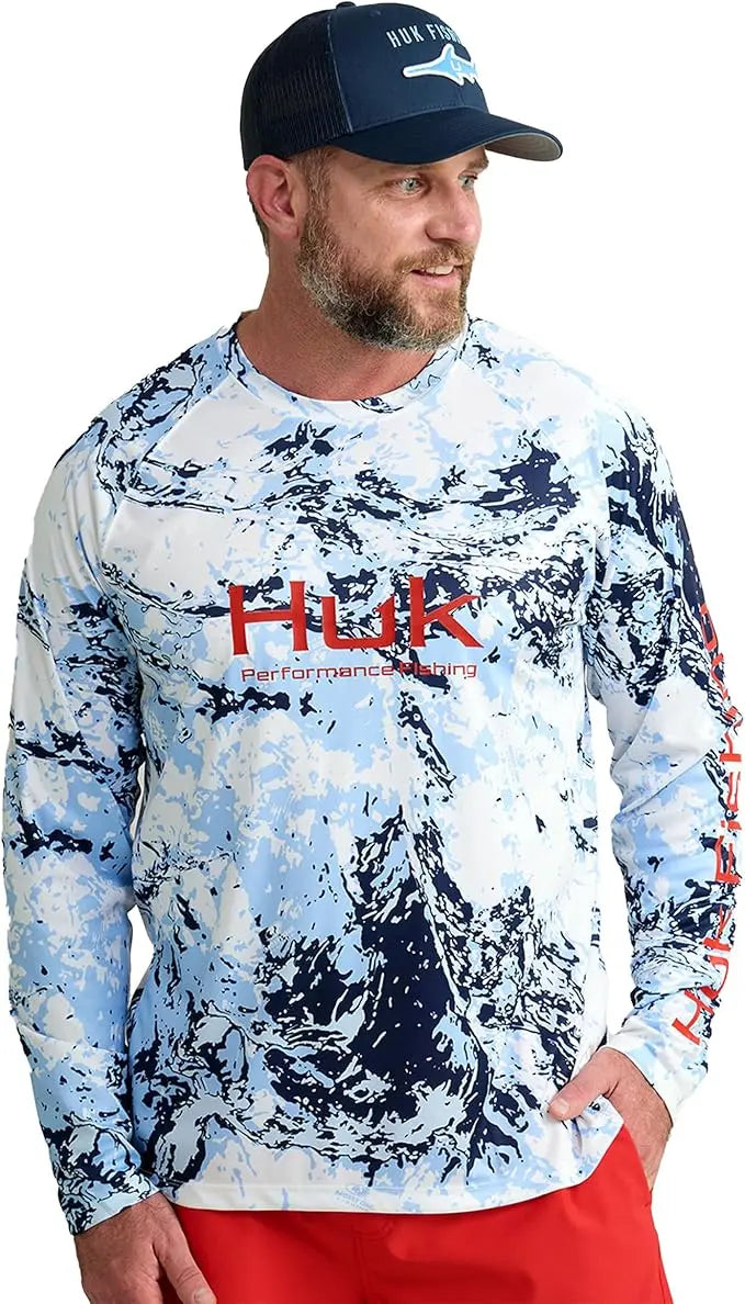 - HUK MENS PURSUIT LONG SLEEVE CREW: Constructed from a lightweight, durable material that provides excellent breathability and comfort, perfect for active days on the water