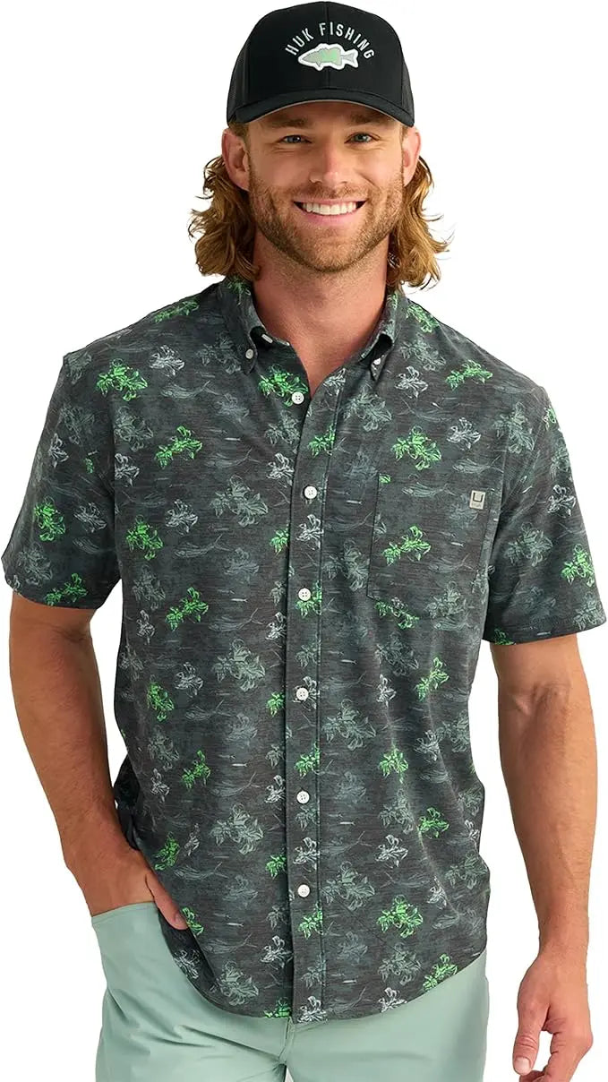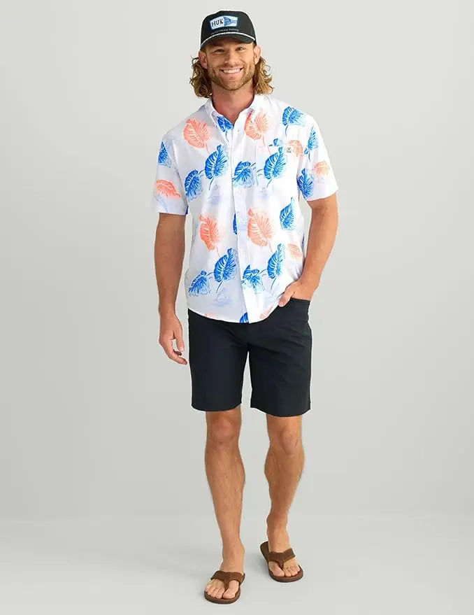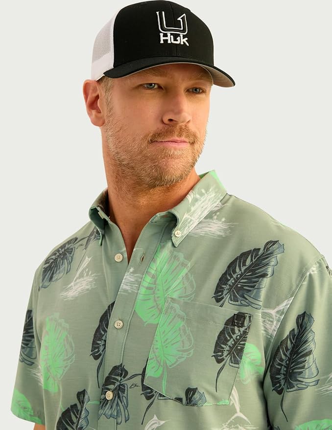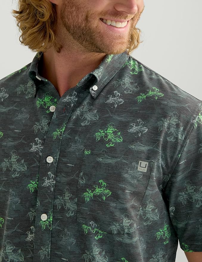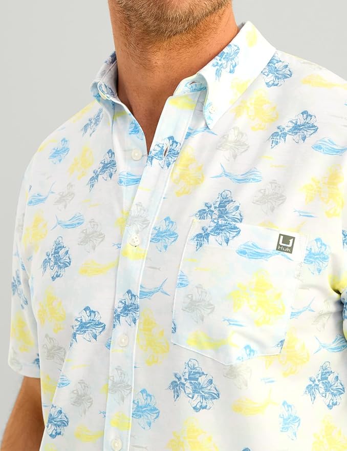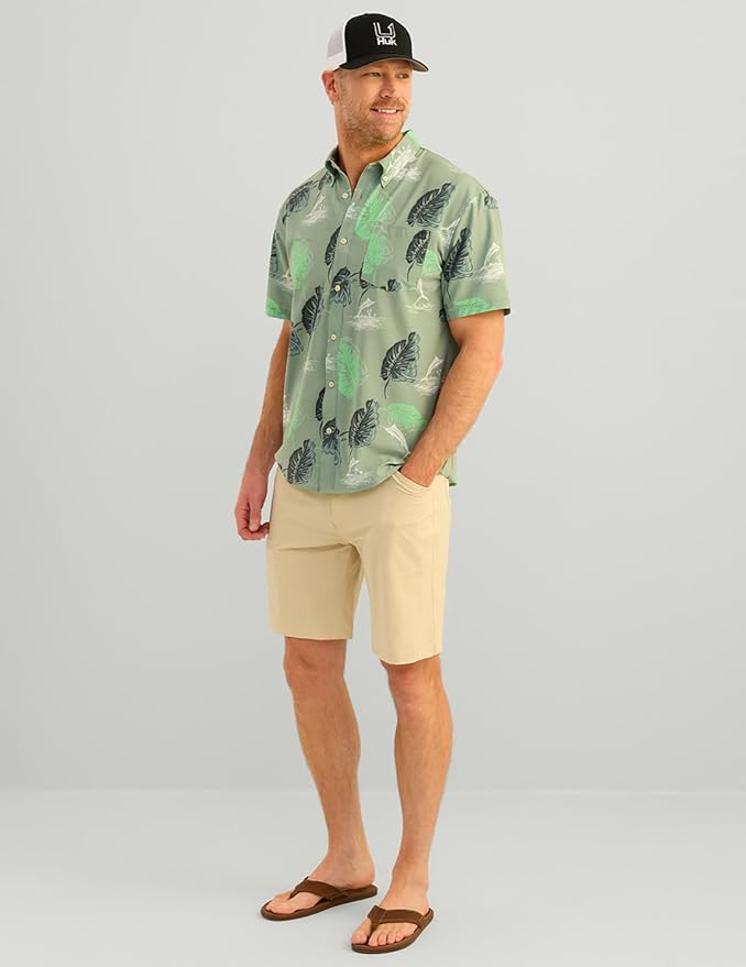 - HUK MENS KONA BUTTON DOWN SHIRT: Combines a traditional button-down look with performance features, perfect for casual outings or days on the water