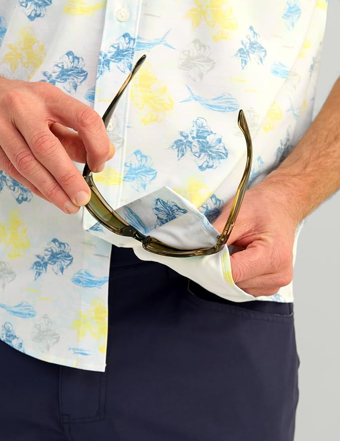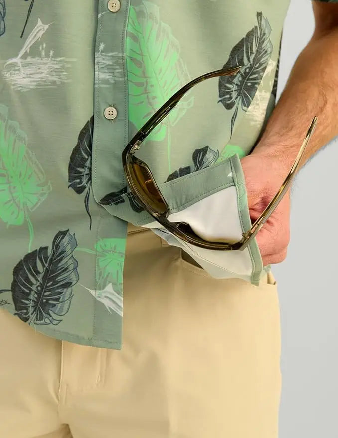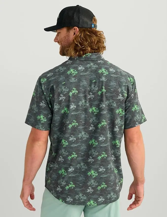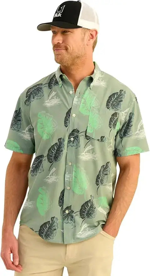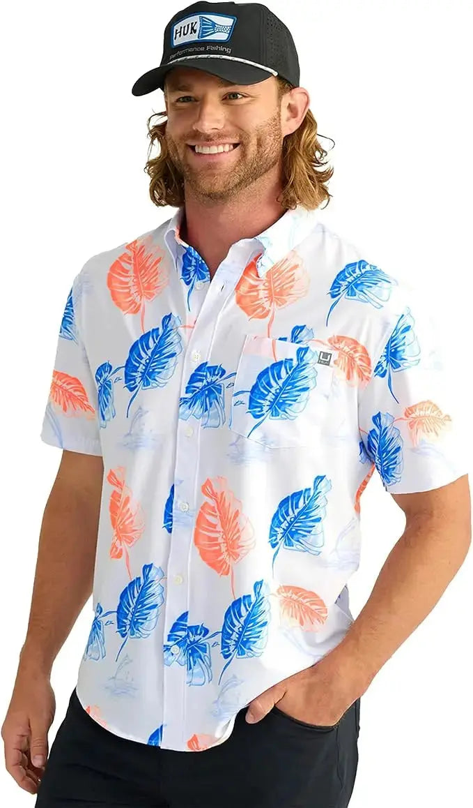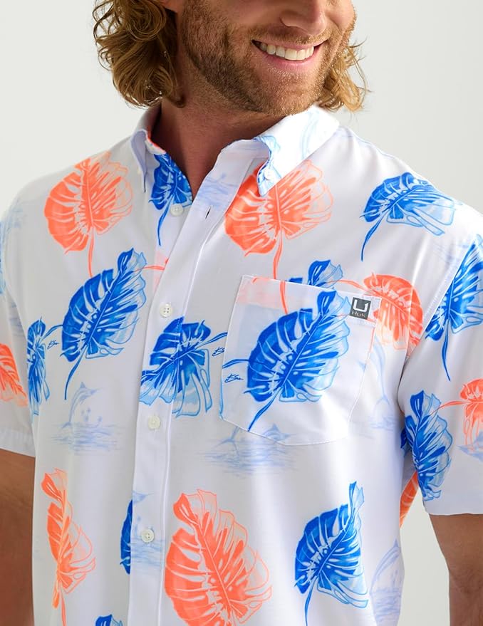 - HUK MENS KONA BUTTON DOWN SHIRT: Combines a traditional button-down look with performance features, perfect for casual outings or days on the water