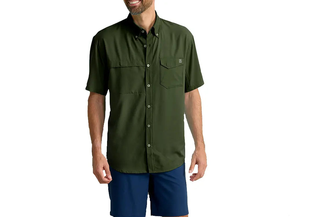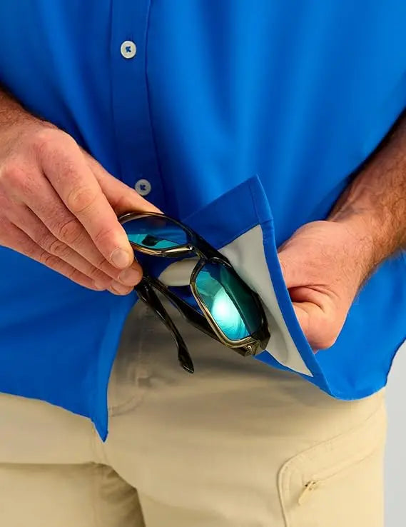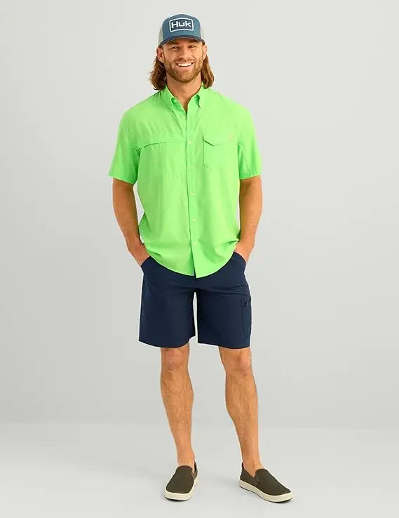 The Huk Tide Point Short Sleeve provides superior performance, designed for comfort and durability both on and off the water. This product offers 30+ UPF protection, mechanical stretch and a quick-drying fabric with moisture transport capability. It also features a mesh-backed chest pocket, perforated back, interior eyewear wipe and button roll up sleeves. Get everything you need in one garment.