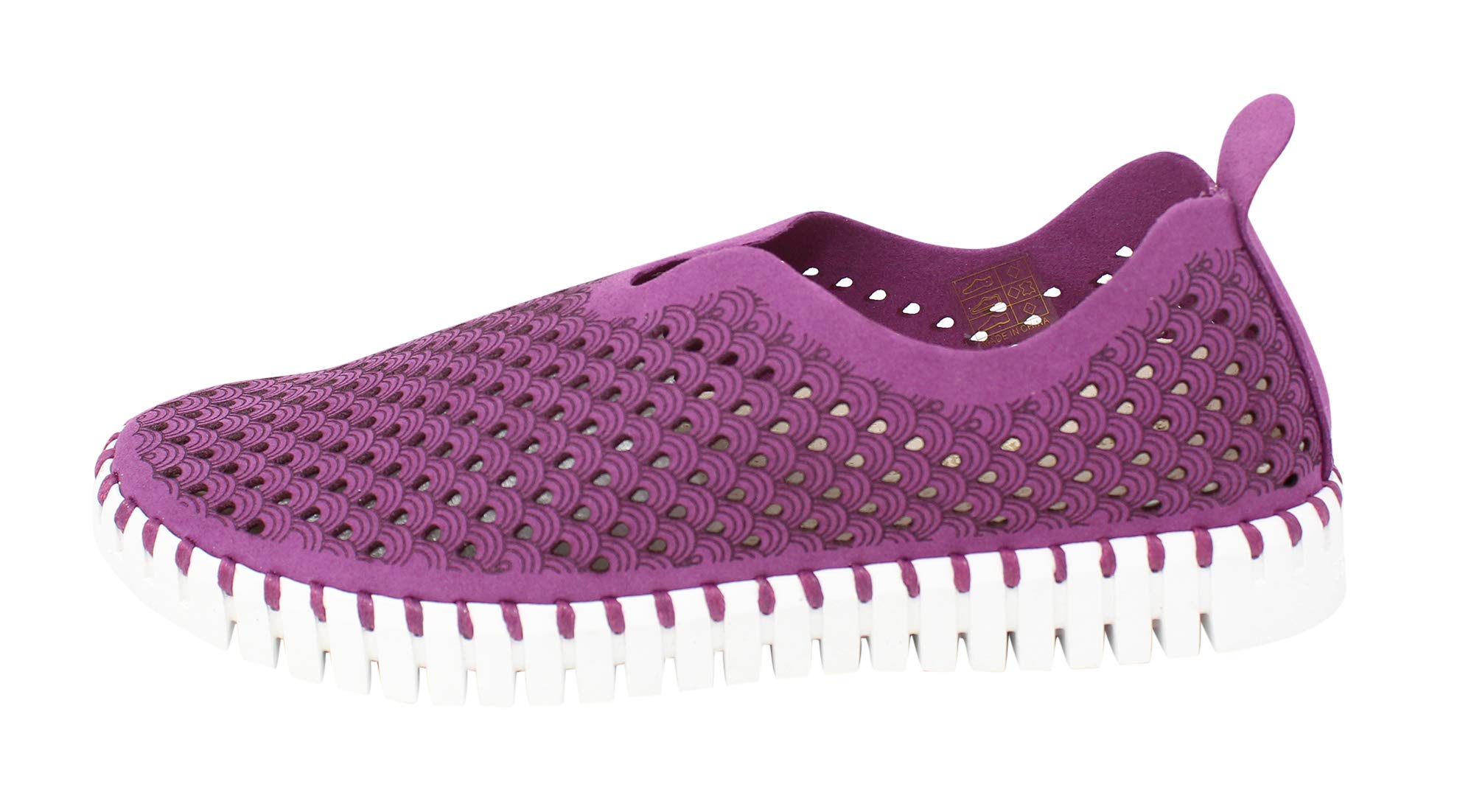 • STYLE & FUNCTIONALITY: The shoe is practical, very comfortable and has a great appearance. With its flexible outsole made of natural rubber, and upper with laser cut pattern, which makes it breathable, makes it the perfect travel shoe. The shoe is made of recycled microfiber, and comes in all kinds of colors, from luxurious basic colors to bright happy colors, with matching stitching. The upper construction is made without any glue.