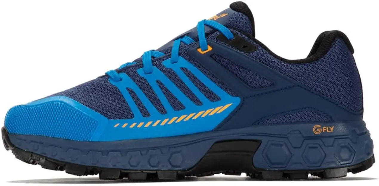 Our first ROCLITE shoe to feature Graphene in both the rubber outsole and foam midsole gives all-terrain grip for longer runs and adventures when extra cushioning is desired. Equally happy on or off trail, the versatile 6mm Graphene-enhanced lugs bite and hold across all ground, from hard rock to soft bog. G-FLY Graphene cushioned foam provides 25% greater energy return that lasts for longer, while a super-tough new mesh upper, improved locked-in fit, flexible rock plate and reinforced toe bumper all keep feet secure and protected.