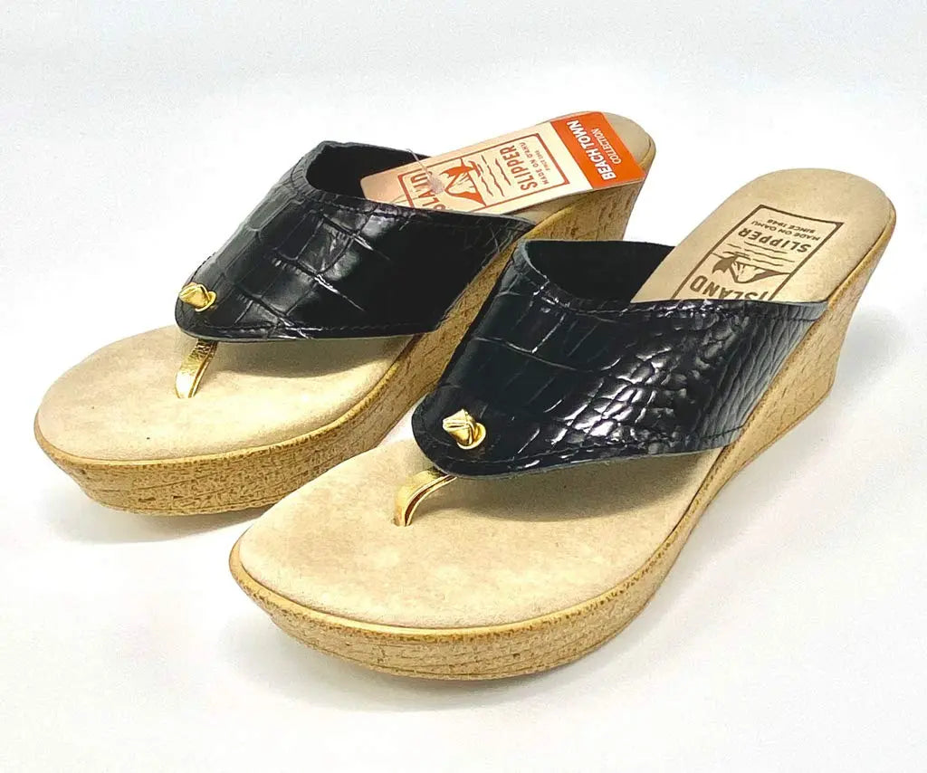 Island Slipper Women's Embossed Leather Vamp Thong Size 9 Sandals