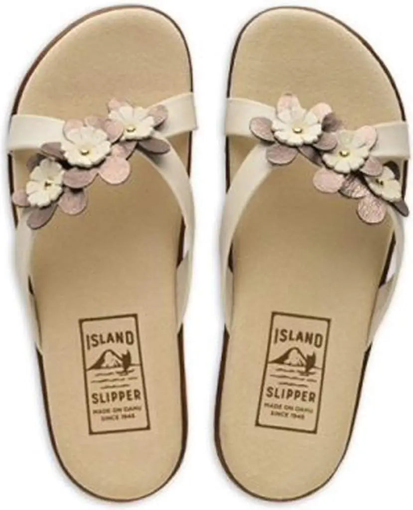 The DT Lehua is a hand crafted slip-on which is accented with leather plumeria flowers.