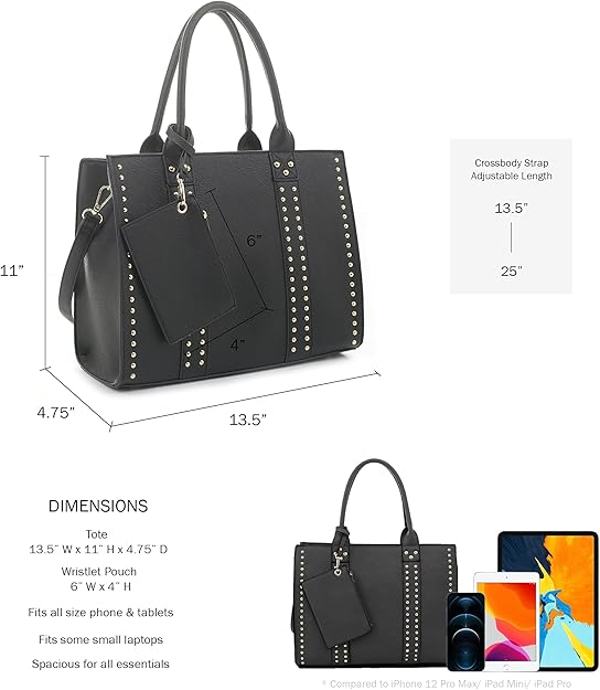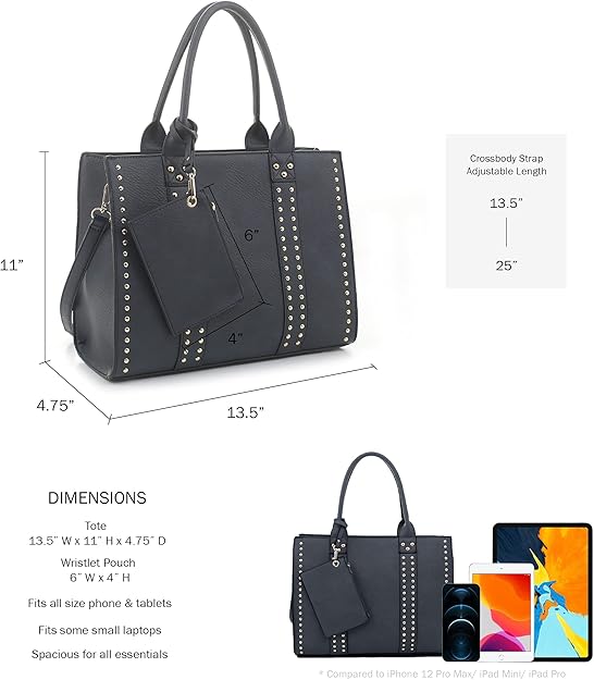 - MODERN STYLE: This CCW Womens Crossbody Handbag is a perfect accessory! It is fashionable, yet casual enough to work with any outfit. Go from day to night with the elegant look. This satchel bags exterior is topped off with stylish stud accents. This handbag comes with a detachable and adjustable cross body strap. Perfect for those sunny days when carrying a handbag is not an option.