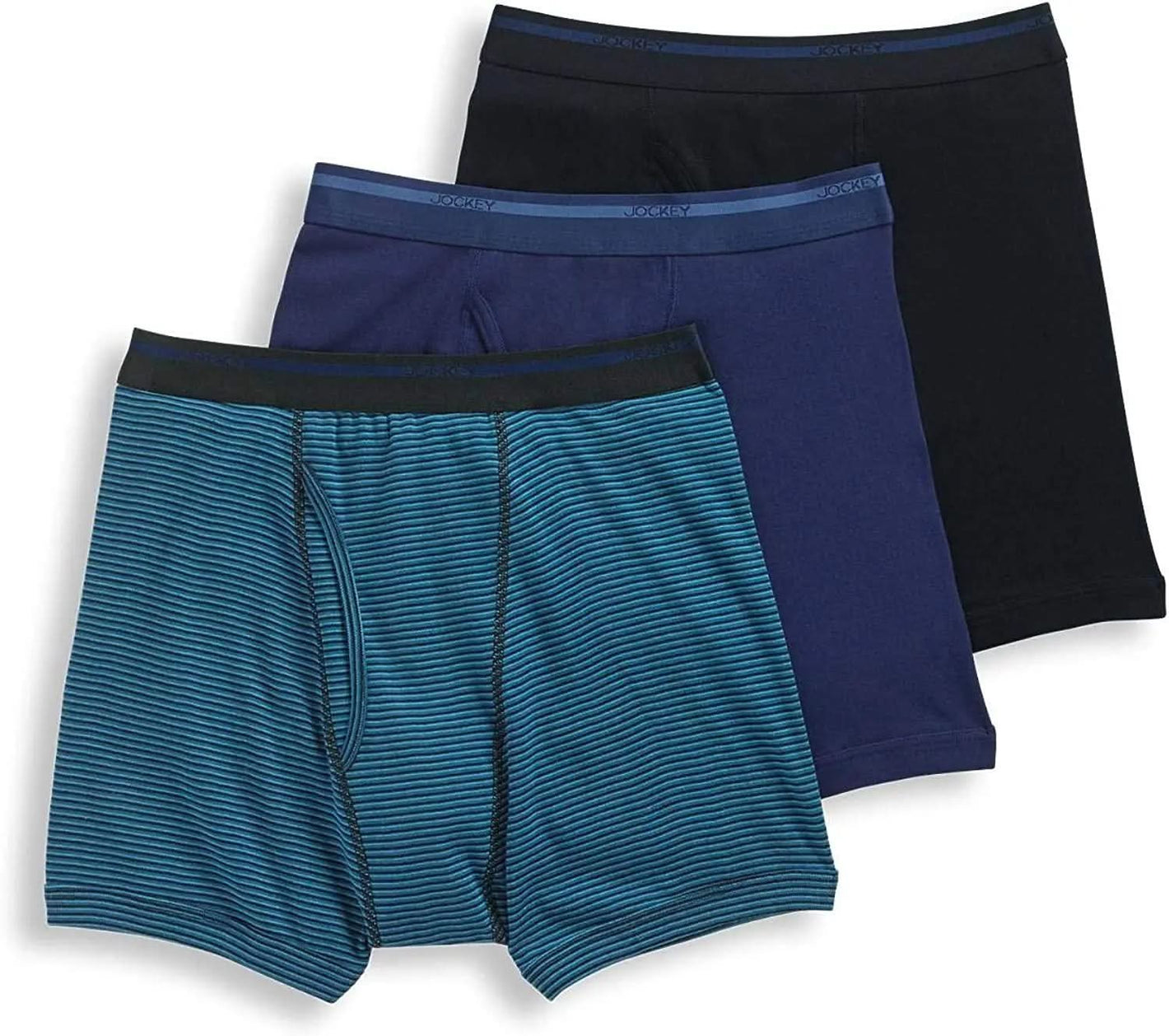 Jockey Men's Classic 5" Large 3 Pack Black/Teal/Blue Boxer Brief Underwear