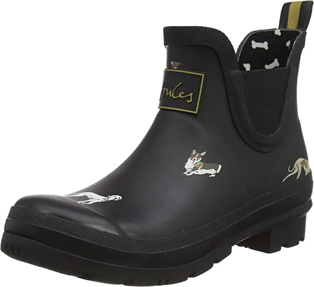 Joules Women's Wellibob Black Dog Size 6 Short Height Rain Boot