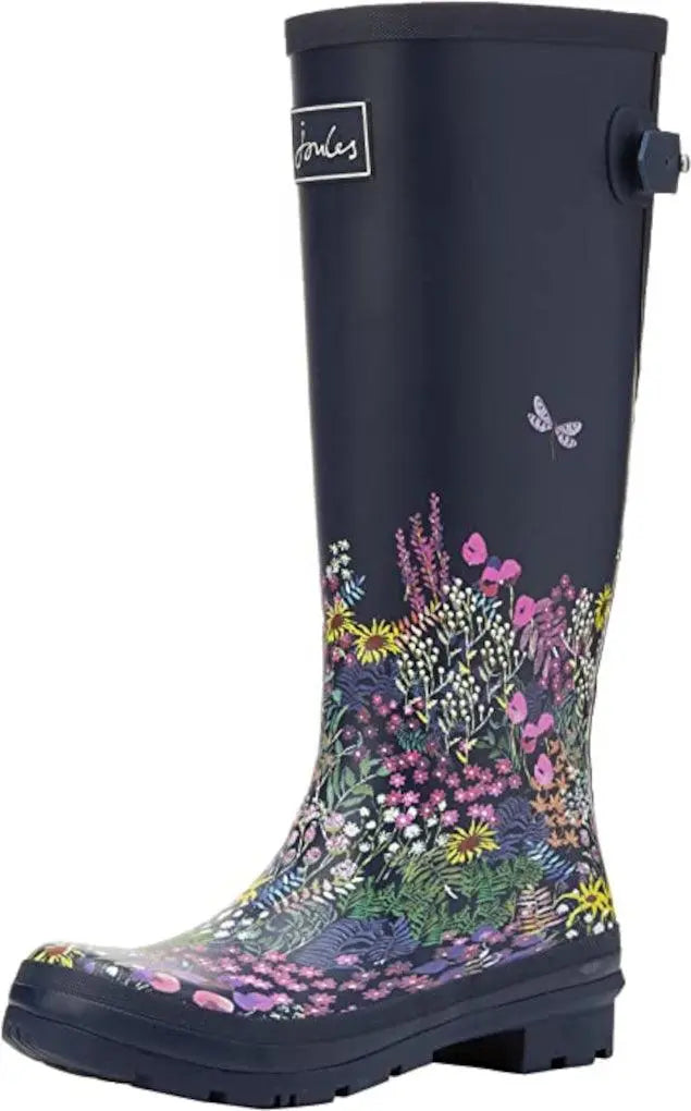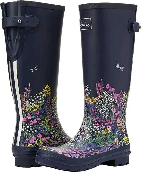 - The Joules Welly Print rain boots will enlighten your rainy days with a printed rubber upper, knee-height design, and adjustable buckle detail in back.