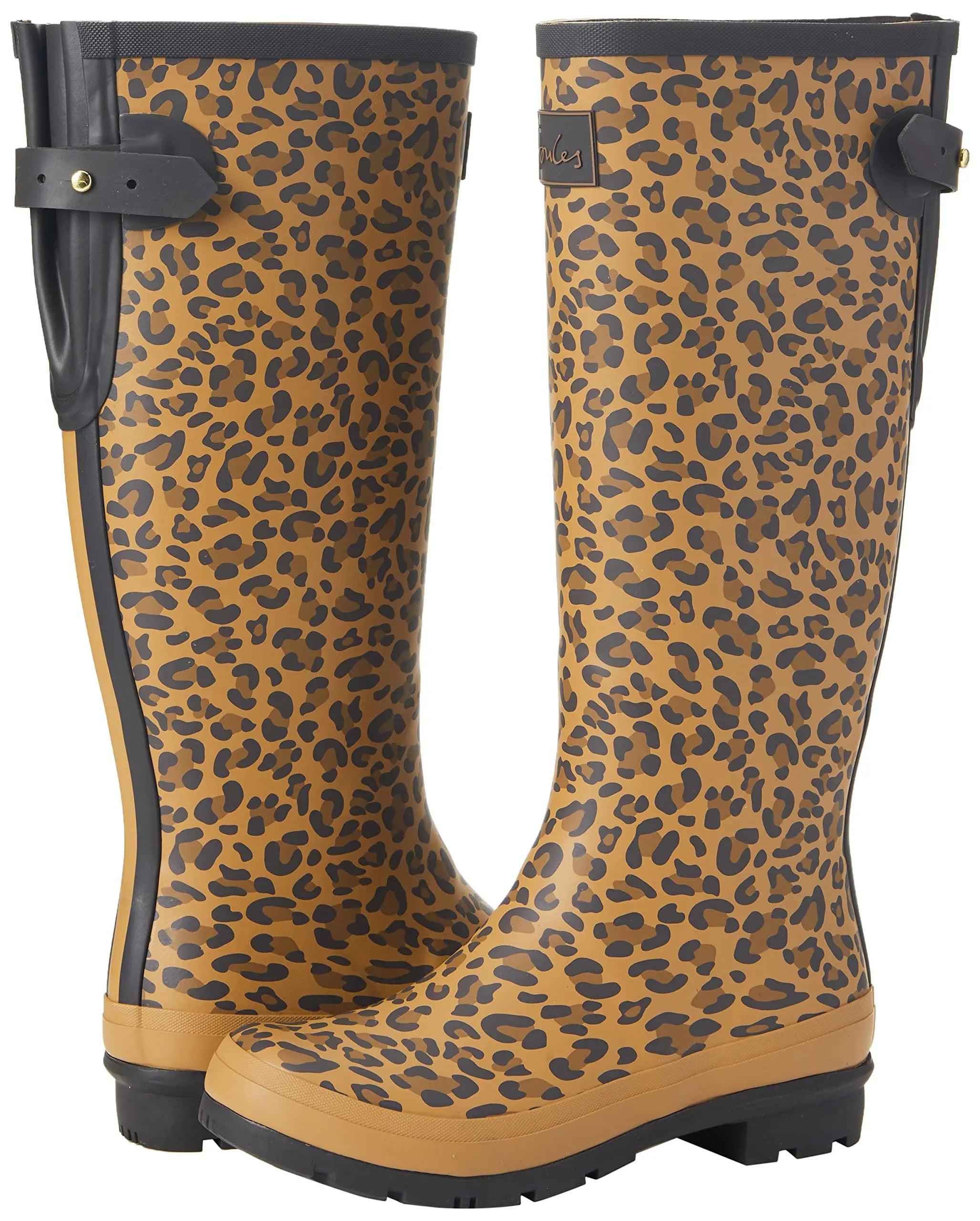 Joules Women's Welly Print Tan Leopard Size 7 Knee High Rain Boot
