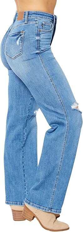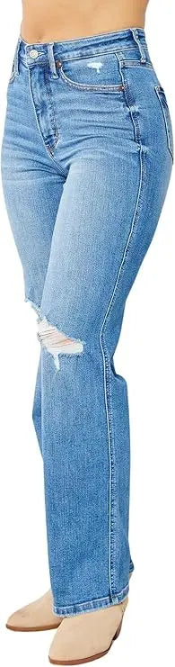 Upgrade your everyday style with our High Waist Tummy Control Knee Destroy Straight Jeans. These comfy, high-rise jeans provide a laid-back vibe with just the right amount of distressed detailing at the knees. Perfect for effortlessly cool and casual looks that keep you in control.
