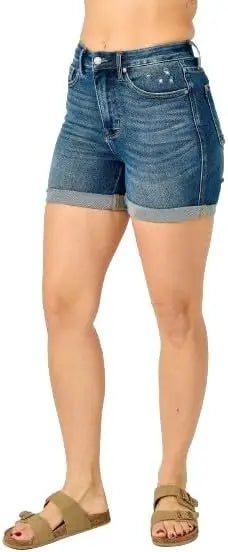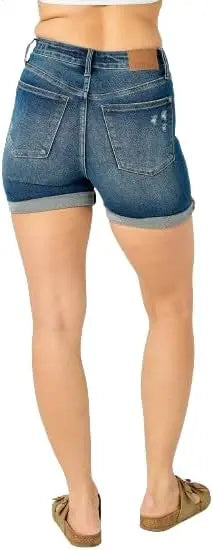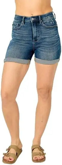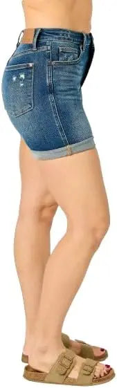 Flaunt your curves with Judy Blue High Rise Shorts from Judy Blue. The Tummy Control Tech keeps you looking and feeling your best. The optional cuffed hem adds a touch of vintage charm to these classic denim shorts. Perfect for any sunny adventure. Get them now before they're gone! S: Waist 26" Hips 32" Rise 10.5" Inseam Cuffed 4" Cncuffed 7" M: Waist 28" Hips 34" Rise 11" Inseam Cuffed 4" Uncuffed 7" L: Waist 30" Hips 36" Rise 11" Inseam Cuffed 4" Uncuffed 7" XL: Waist 32" Hips 38" Rise 11.5" Inseam Cuffed 4" Uncuffed 7" 1XL: Waist 34: Hips 44" Rise 12" Inseam Cuffed 5" Uncuffed 8" 2XL: Waist 38" Hips 48" Rise 12.5" Inseam Cuffed 5" Uncuffed 8" 3XL: Waist 40" Hips 50" Rise 13" Inseam Cuffed 5" Uncuffed 8"