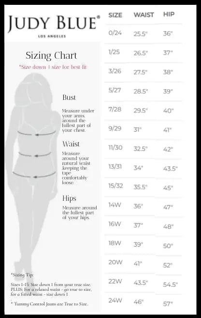- Judy Blue Size: From your even size subtract 1 to find your true odd size (for example: a size 14 would be an 13 in women's odd sizes). If you are between two even sizes, take the middle size (for example: a 8-10 would be a true size 9). That is then your starting point for every pair. Judy Blue jeans are very stretchy compared to other brands. We recommend sizing down one size in most cases.
