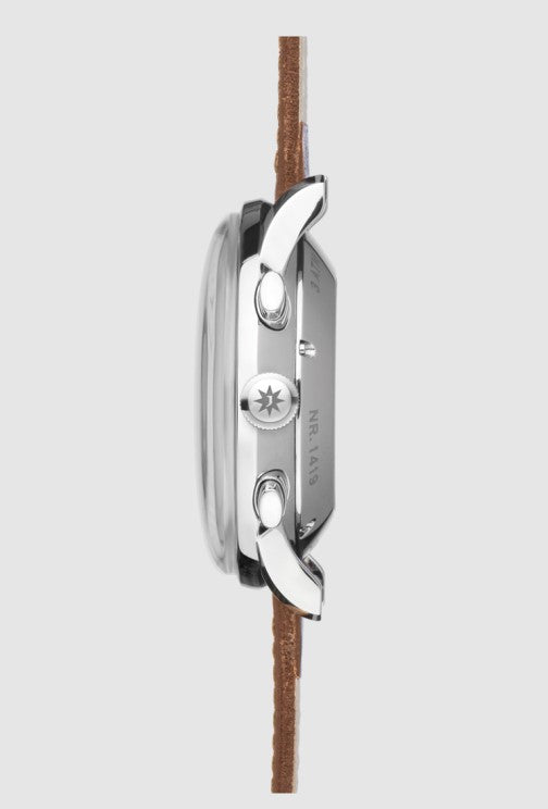 Elegant or dynamic? A moot consideration for the Meister Chronoscope. After all, this watch effortlessly combines classic charm with sporty functions. The characteristic, bowl-like dimples for the auxiliary dial are a typical feature for the Meister range.