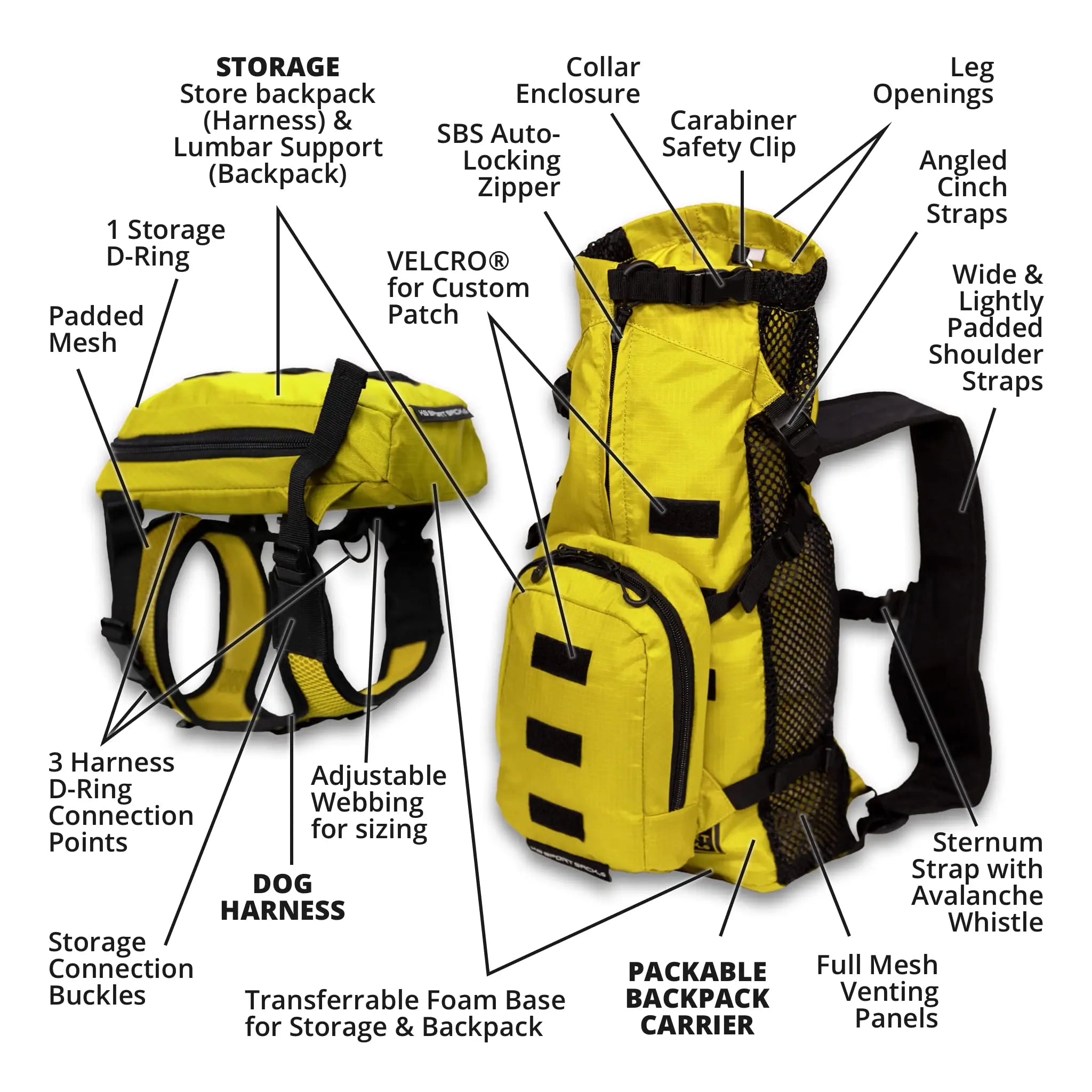 We've created an all new dog walking/hiking experience for those looking for ONE product that allows you to WALK your dog, STORE your gear, and CARRY your dog.