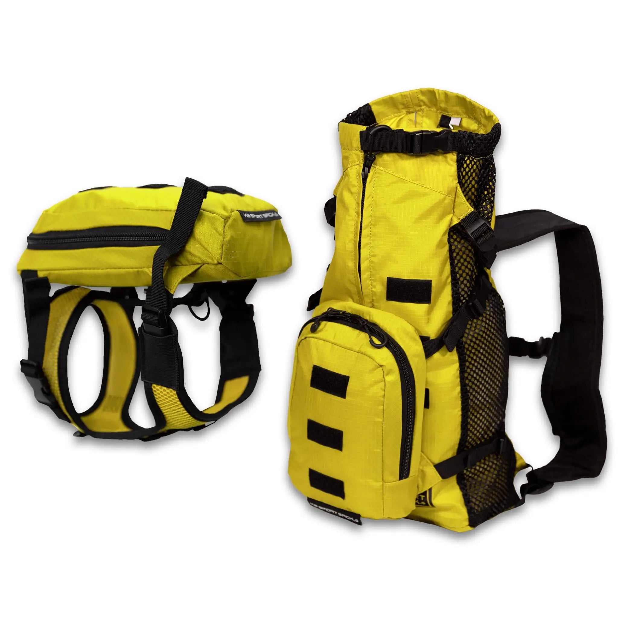 - WALK-ON WITH HARNESS & STORAGE. The Walk-On is a lightweight, packable backpack dog carrier, with a compatible harness and storage bag made for small to medium sized dogs. We've created an all new dog walking/hiking experience for those looking for ONE product that allows you to WALK your dog, STORE your gear, and CARRY your dog