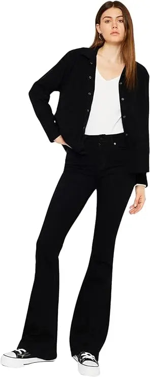 - Styled Flared Bell Bottom Denim Jeans with a Flared Leg with an Exaggerated Design