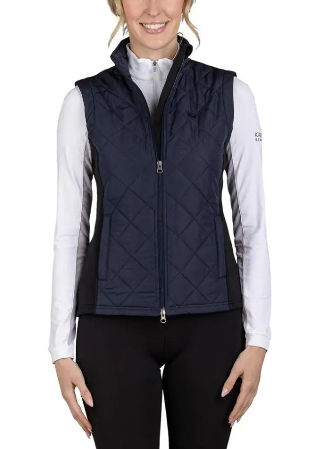 Elevated black quilted front panels and high-performance technical knit fabric makes this the medium weight vest of the season. Inner soft velour makes our vest extra cozy. Two-way zip and contemporary fit.