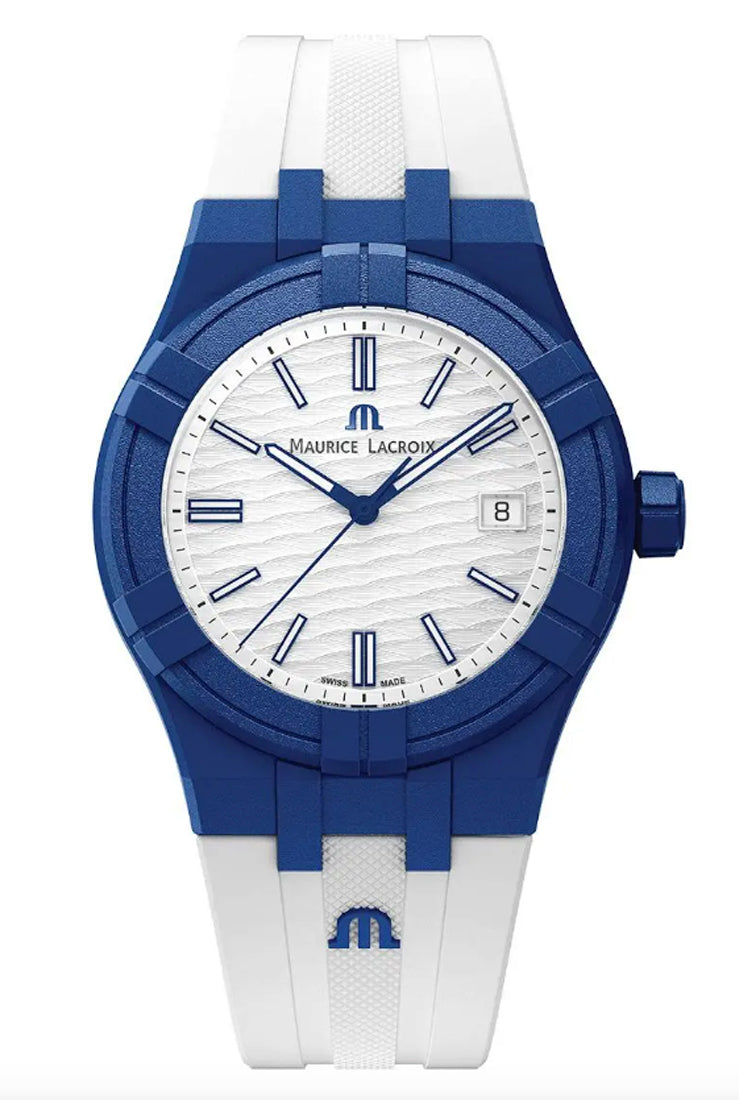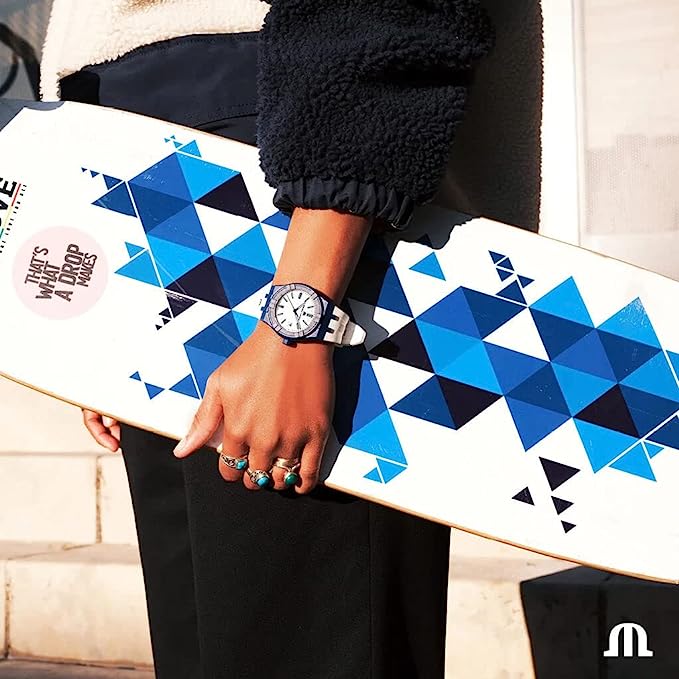 The AIKON #tide shares the same attributes as other members of AIKON family, but is formed of #tide ocean-bound upcycled plastic combined with glass fibre. The resultant composite material is twice as hard as standard plastic, five times more resistant and has a carbon footprint significant less than the production of virgin PET. The bezel, case, case back, crown, end-piece and buckle on this new model are all made from this composite material. It takes 17 bottles to make one fabulous watch and its tailor made packaging, 100% made of #tide ocean material. It’s a win-win deal.
