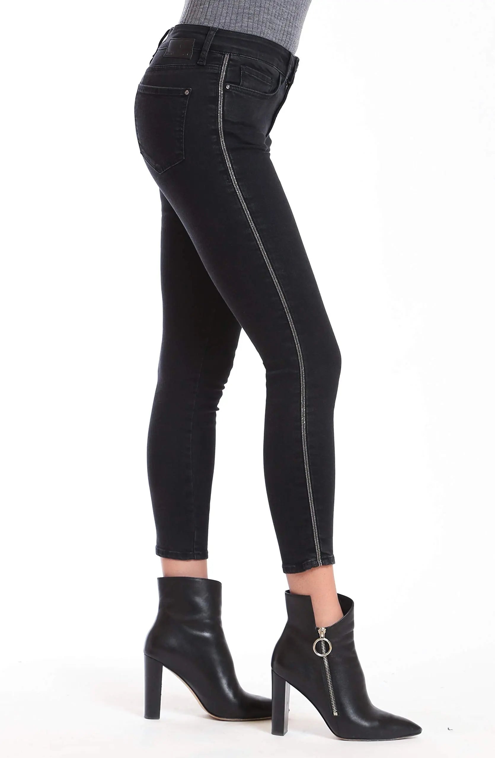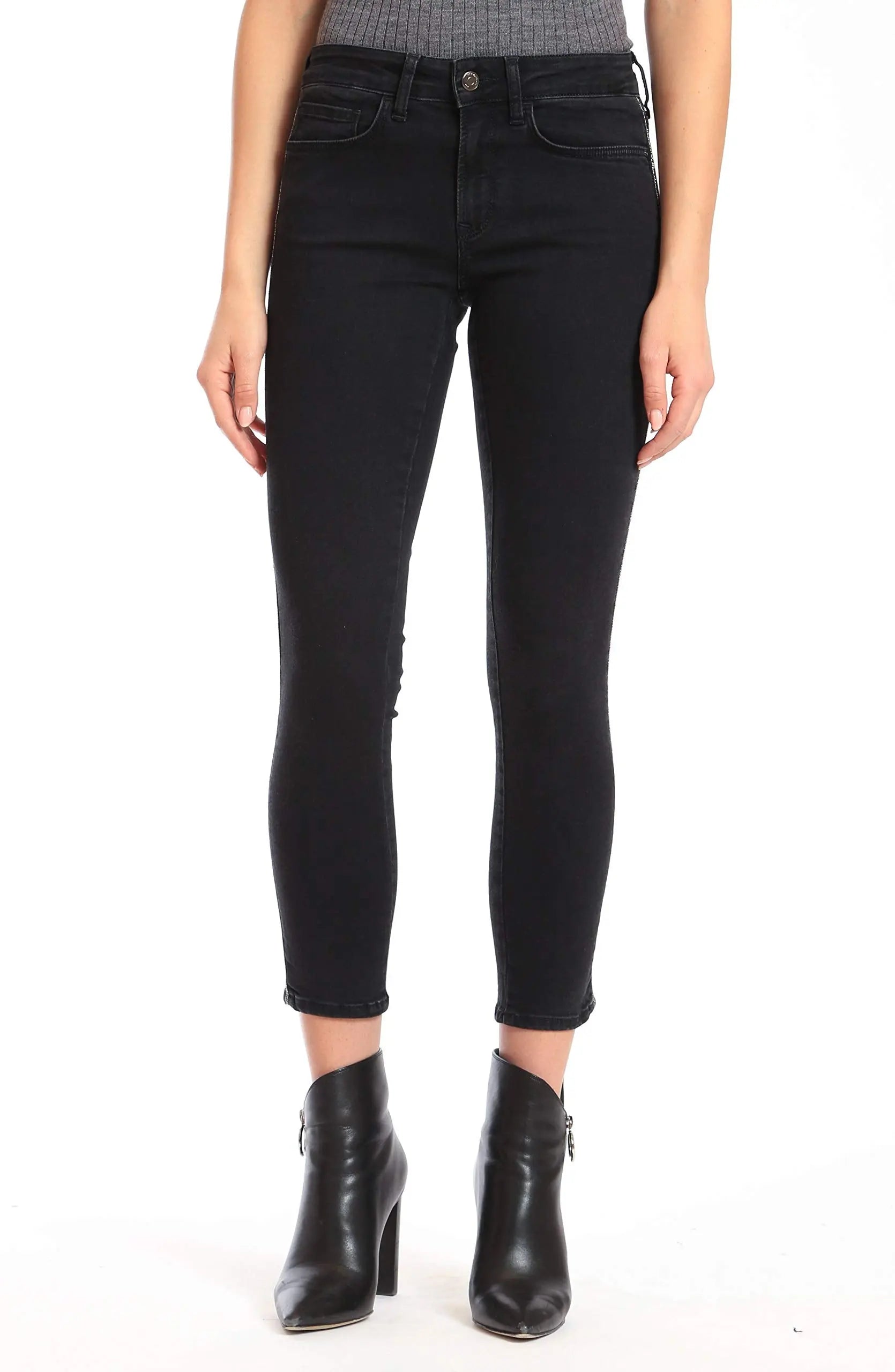 - Mid-rise, super skinny jeans