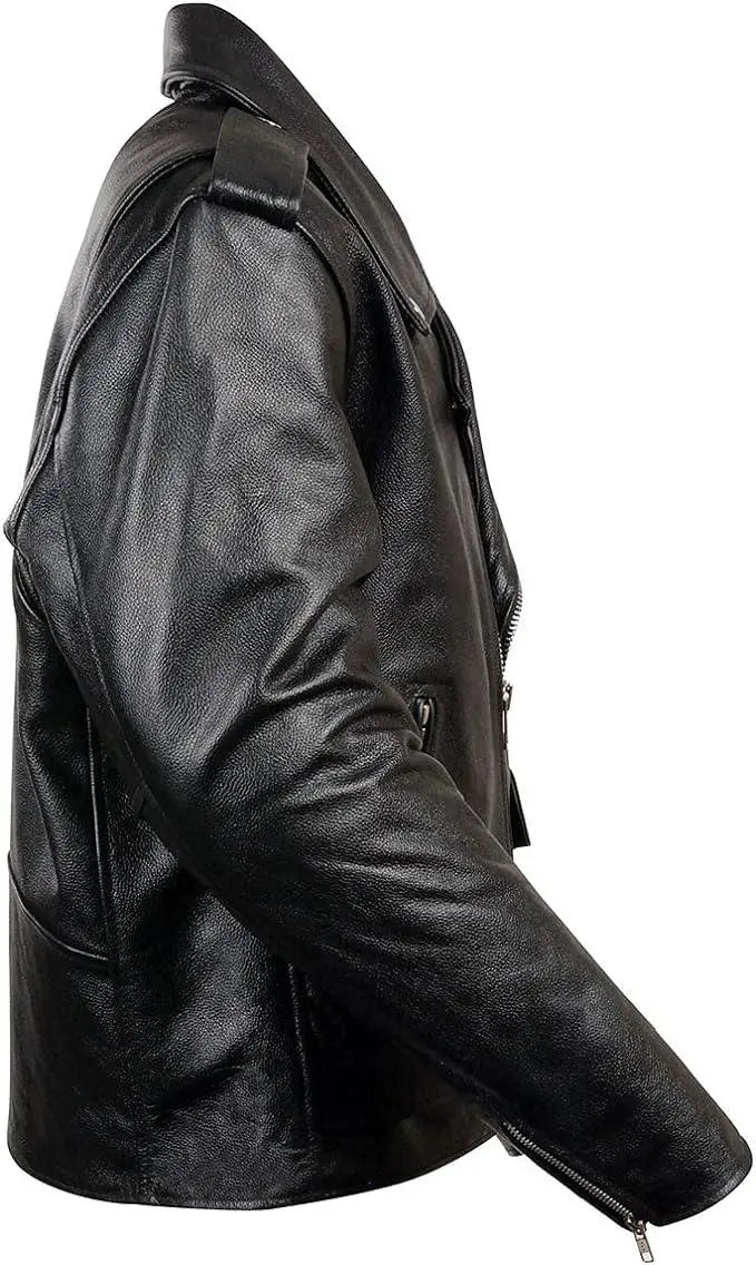 • Featuring a zip-up collar, our men's leather jacket is easy to take on and off. It suitable for all-seasons and all-weather conditions. Whether you're riding in the fall or summer season, Brando jacket will keep you warm and dry. Our black leather jacket is the perfect choice for adult riders who want to elevate their look and can stand through the harsh weather elements.