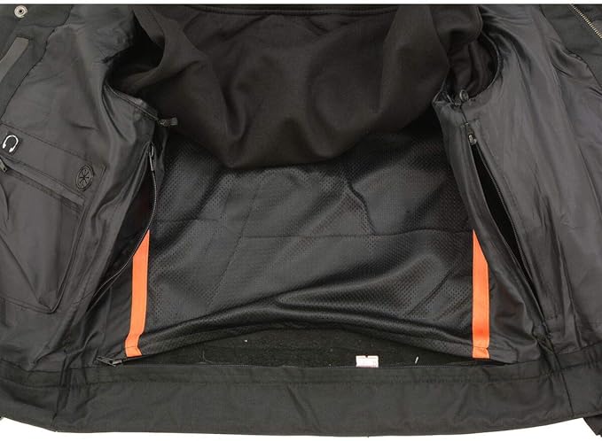 - Our men’s leather vest is equipped with a concealed snap and zip closure system, allowing for quick and hassle-free wear and snug fit, so you can ride with confidence. The plus-size leather vest offers a wide range of sizes, from 3X-Small to 12X-Large, making it suitable for men of various sizes to stay protected while riding their motorcycles. Leather vest for men features inner patch pockets on the back and front, allowing for customizable images and writings.