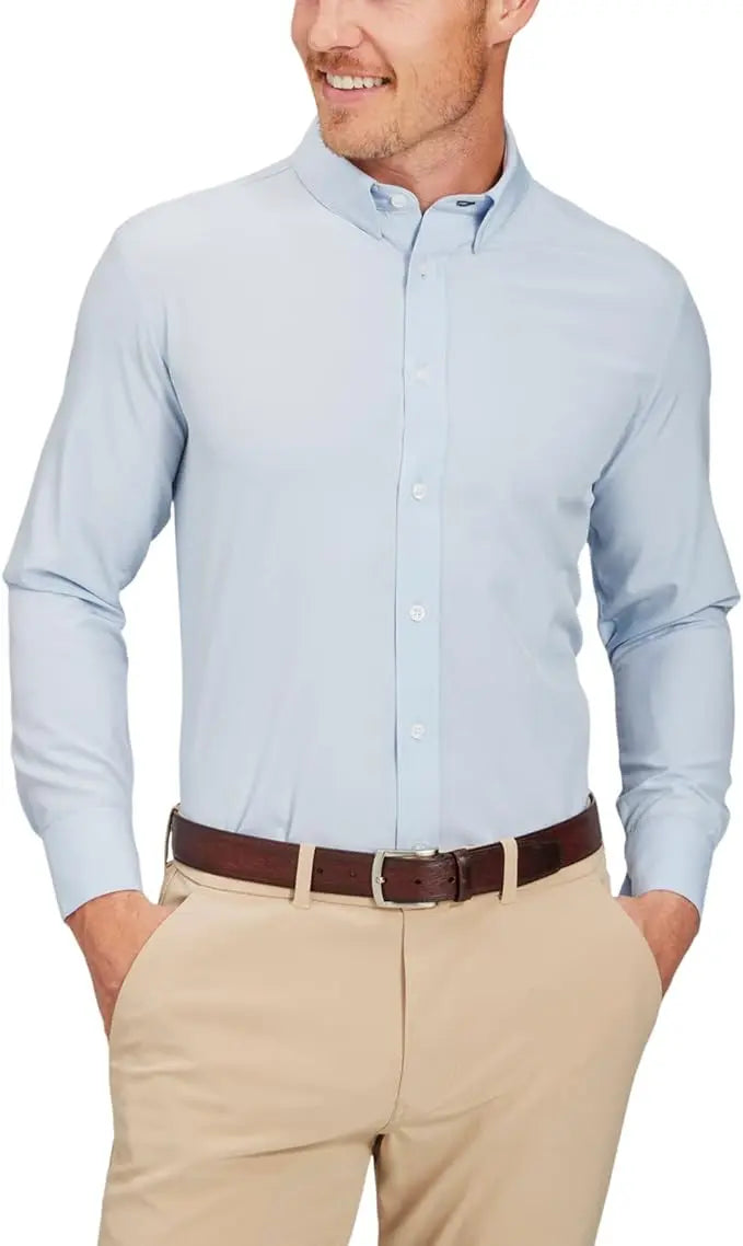 - CARE - NO ironing and NO dry cleaning. Collared shirts for men that are machine washable & wrinkle resistant. Save time and money!