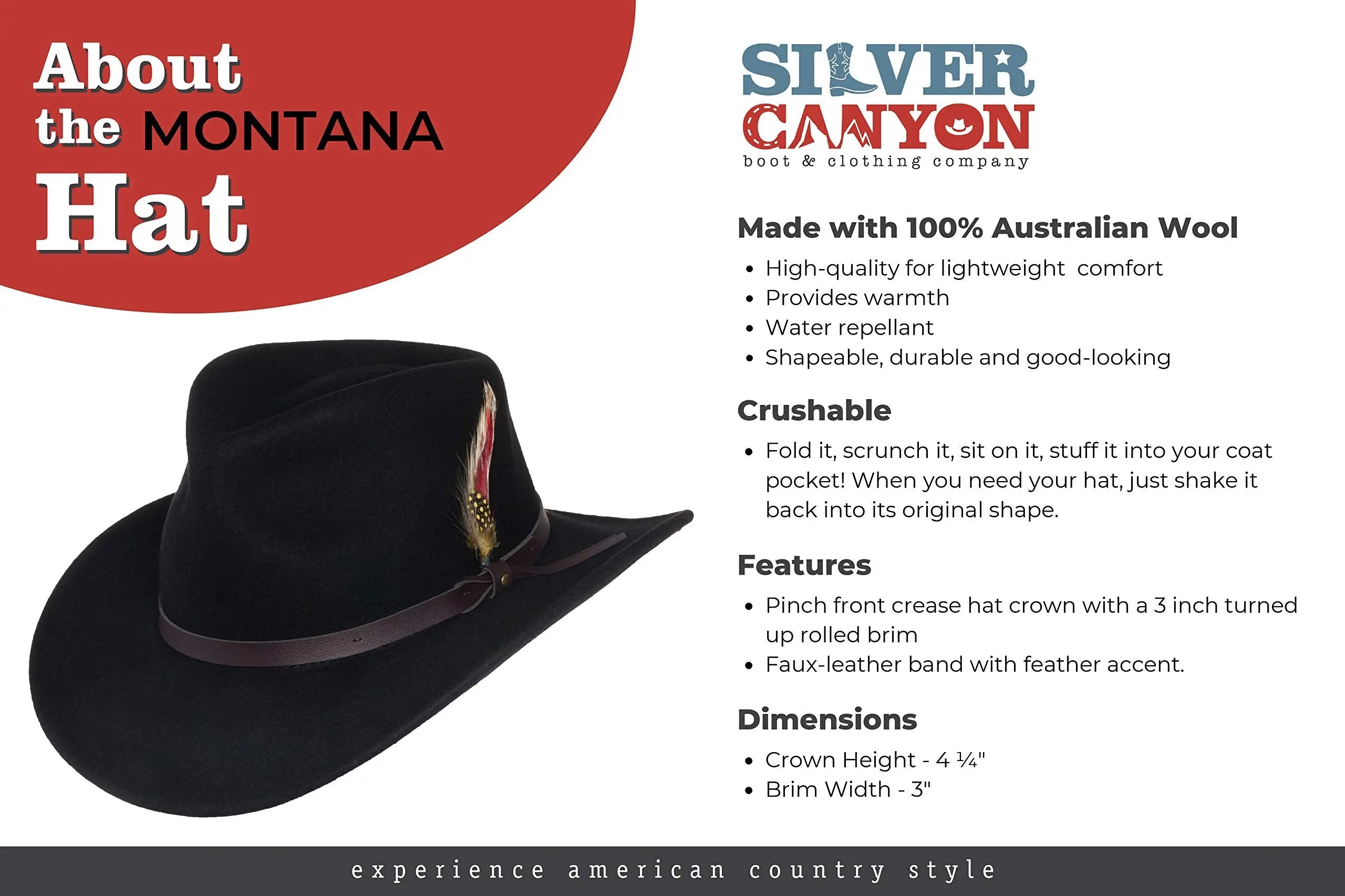 Montana Outback Crushable Western Wool Felt Cowboy Hat by Silver Canyon for Men and Women