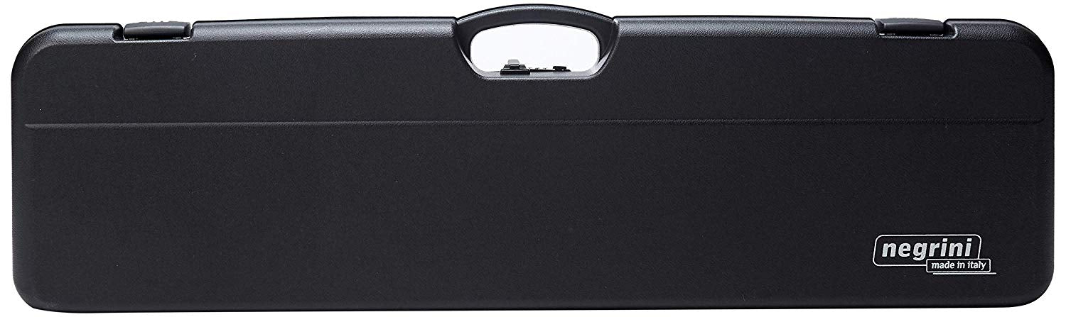 Brand new 'Transformer" design from Negrini. Ultra strong double wall construction consists of a thick thermoformed ABS outer case welded to a rigid inner case fully cushioned in plush velvet. Patented double wall construction assures maximum shock absorption without breaking. Hardened steel locks and hinges are recessed to prevent damage on conveyor belts. Separate compartments for stock and receiver, barrel and forend as well as accessories. All materials used are certified to not out gas or corrode firearms.