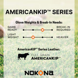 - NOKONA LEATHERS - A top choice among our pro players; The AmericanKIP series white gloves are made with the finest American steerhide, similar characteristics to Japanese & European 'kip' leather, making a light-weight and highly structured glove