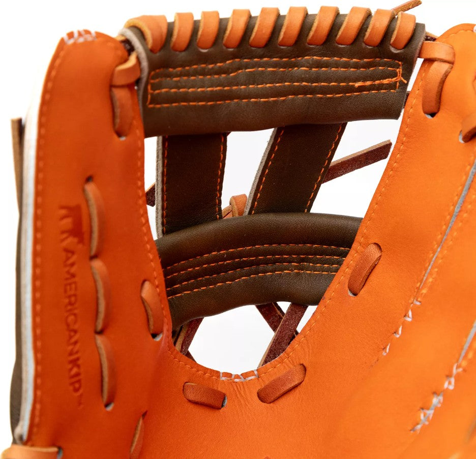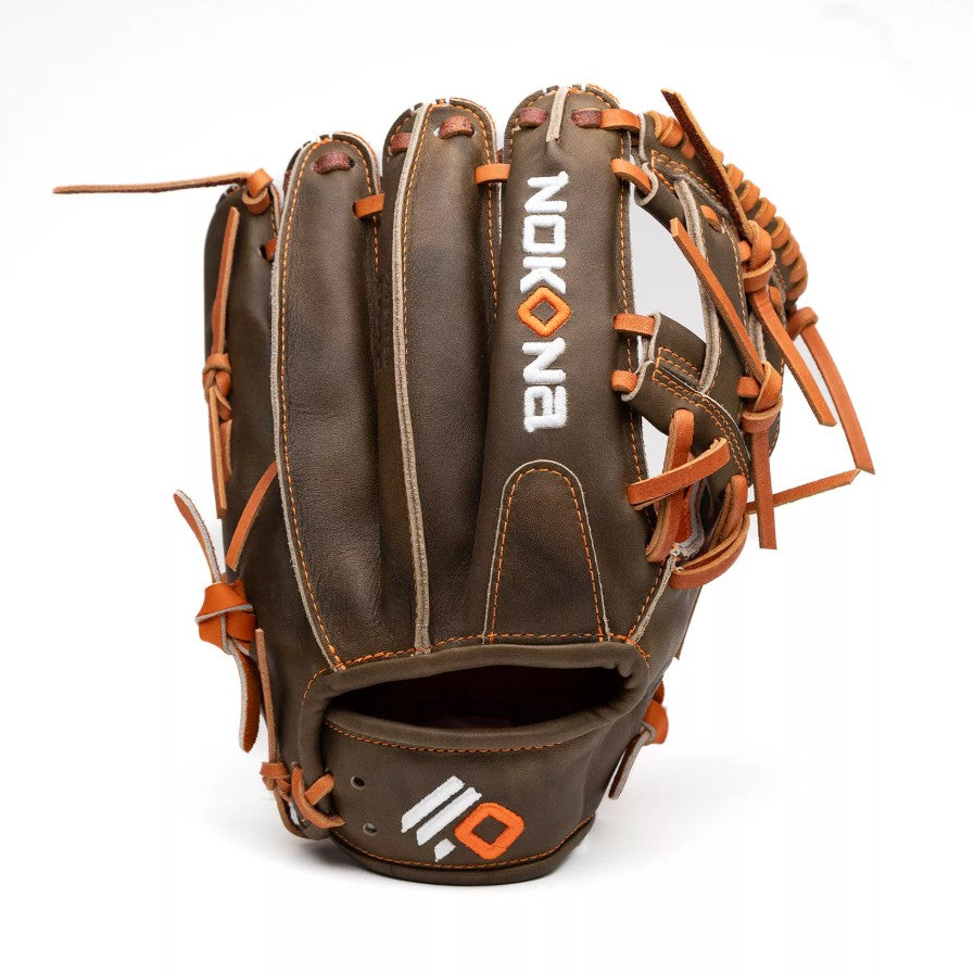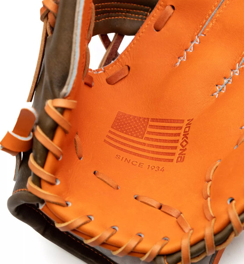 Hunting Seasonâ is a top-of-the-line lightweight performance series featuring patent-pending Precision Edgeâ stitching. Nokonaâs proprietary Olive Crunchâ Steerhide Leather provides great stability and durability, and the specialty caution-orange AmericanKIPâ palm is the premium, lightweight leather preferred by the pros. Nokonaâs Hunting Seasonâ is the ideal glove for any true competitor looking to take their game to the next level, hunting down their opponents for the win.